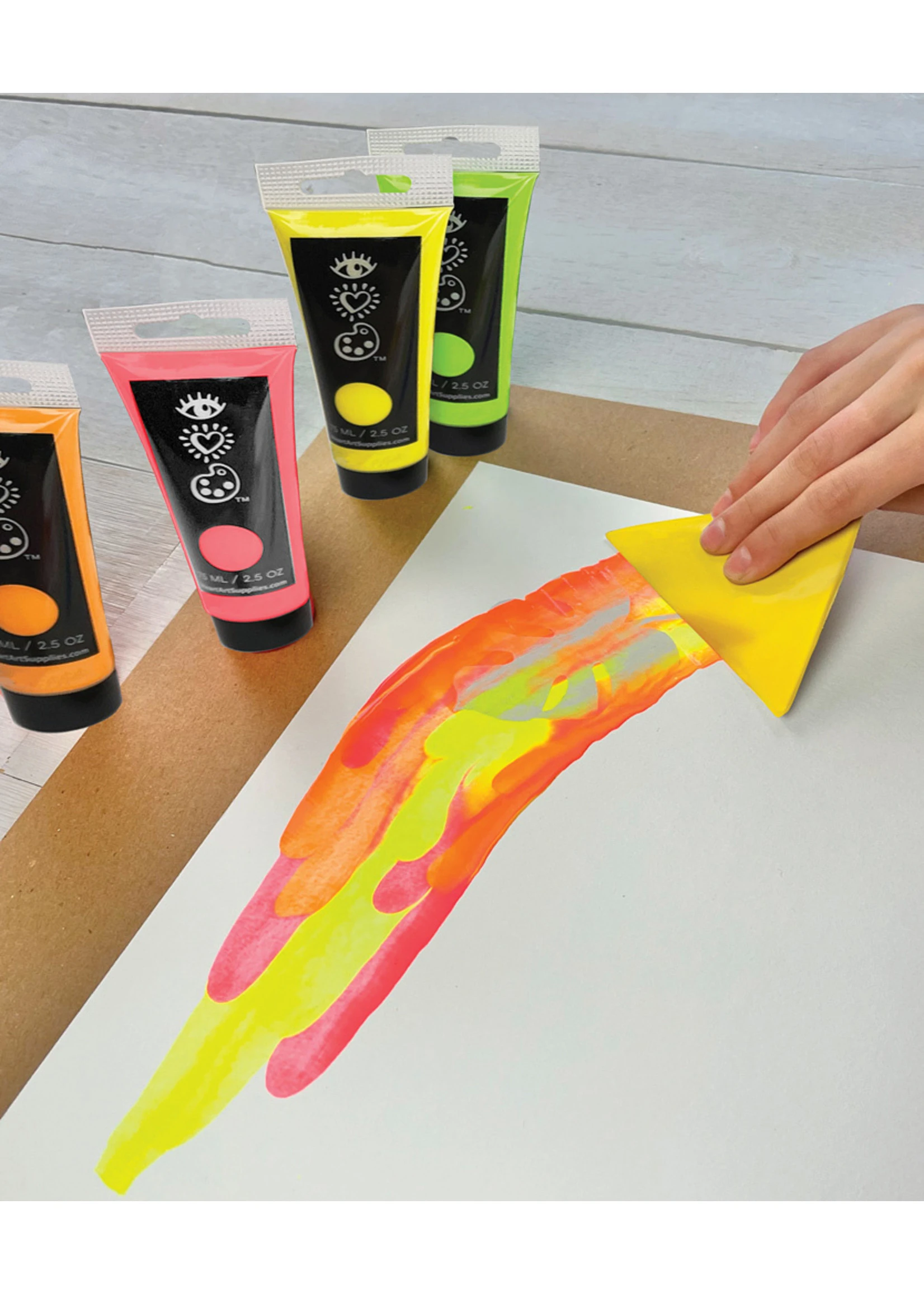 Get in on this social media craze. Drip, spread, and voila! A major masterpiece is born. Have fun exploring this new artistic technique when you open the included fold-out workspace complete with two squeegees, five neon paint colors, peel-away stickers, punch-out sheets, and thick paper.