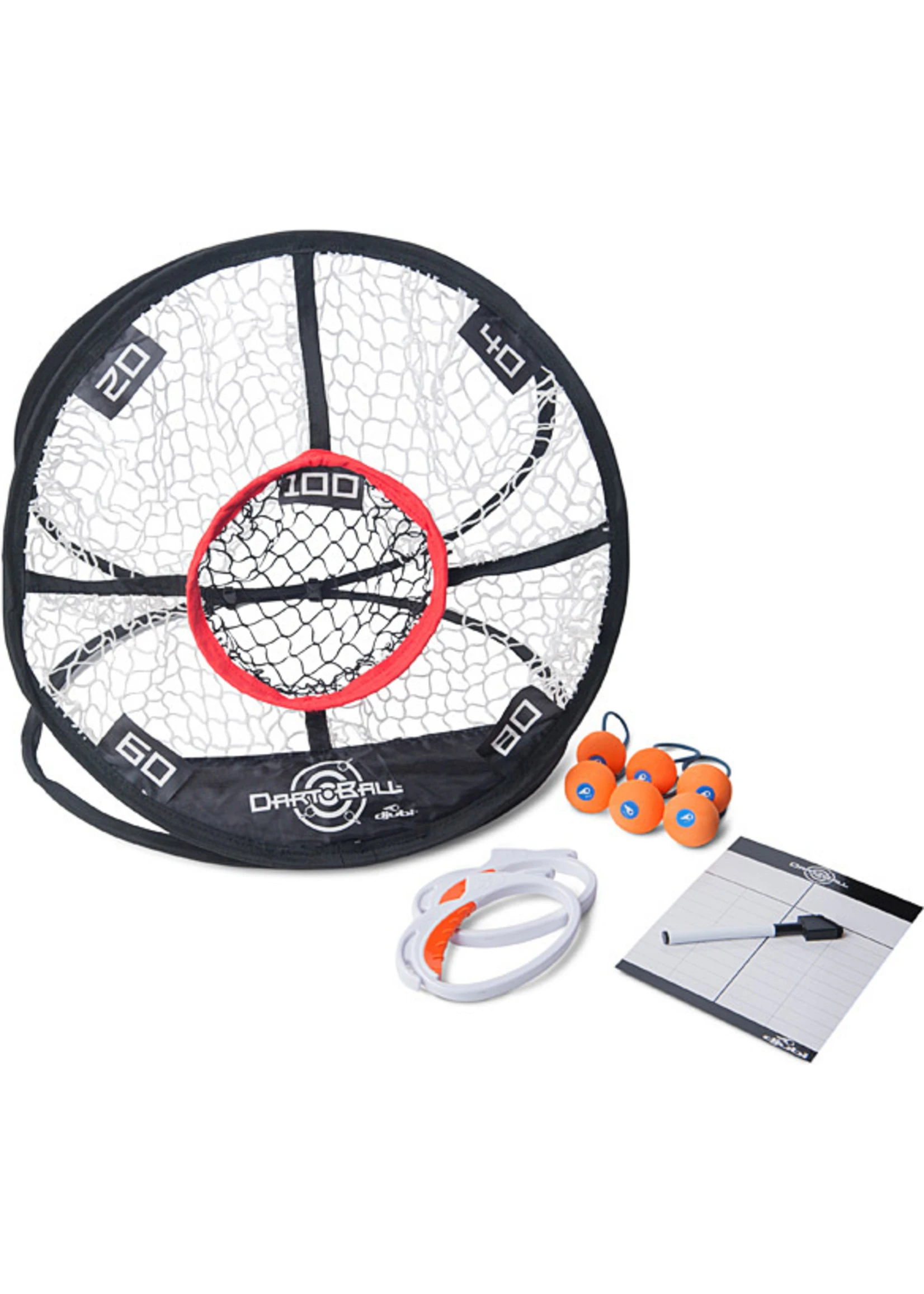 Think slingshot plus darts. Launch a ball into the portable target for various points, like darts! The target has four side pockets and a bullseye. Test your aim to score big, and place the target on the ground to play anywhere you go. Bragging rights only come to those who score the highest!