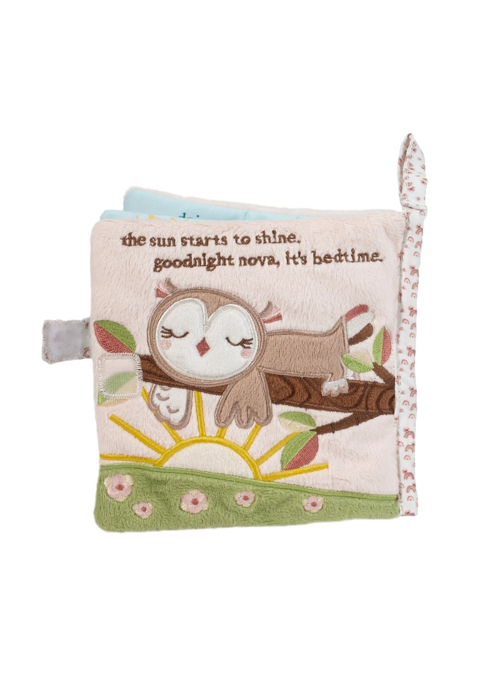Take to the woods with Nova the Owl for an exciting game of peek-a-boo in our engaging Soft Activity Book! Your little one will love the lift-the-flap adventure as they join along with Nova in her woodland game. An unbreakable mirror hides beneath one of the flaps so that Baby can play peek-a-boo too! When its time for rest, Nova goes home to her mama and is embraced in a loving hug. Charming applique illustrations on the front and back cover add visual and textural appeal with their baby-safe embroidery and soft plush materials. The book includes a velcro closure and handy loop for easy attachment to a stroller or activity saucer. Shop our entire Nova the Owl collection to put together a custom ensemble of coordinating accessories.