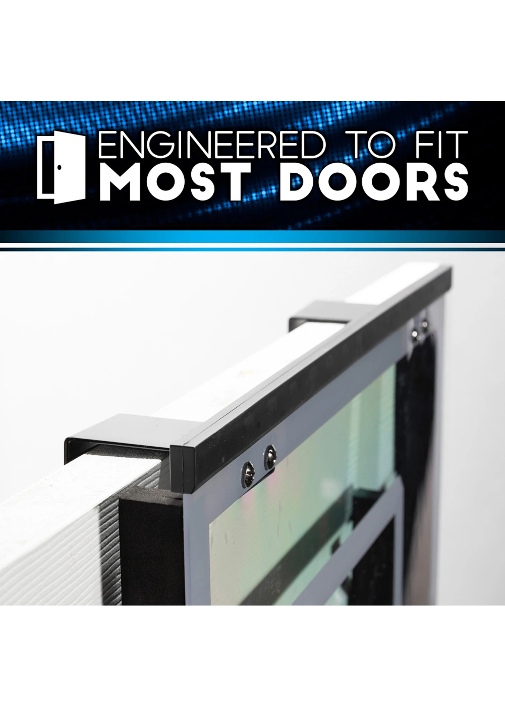 PRO BASKETBALL SETUP – This set has been engineered to fit all regular sized doors with half an inch of protective EVA foam to protect the door itself.