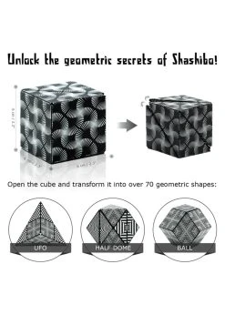 Unlock the mystery of Shashibo! Each Shashibo is powered by 36 rare earth magnets. 1 cube transforms into over 70 shapes. Combine 2 or more Shashibos to build larger shapes and create more possibilities. Can you master the shape shifting box?