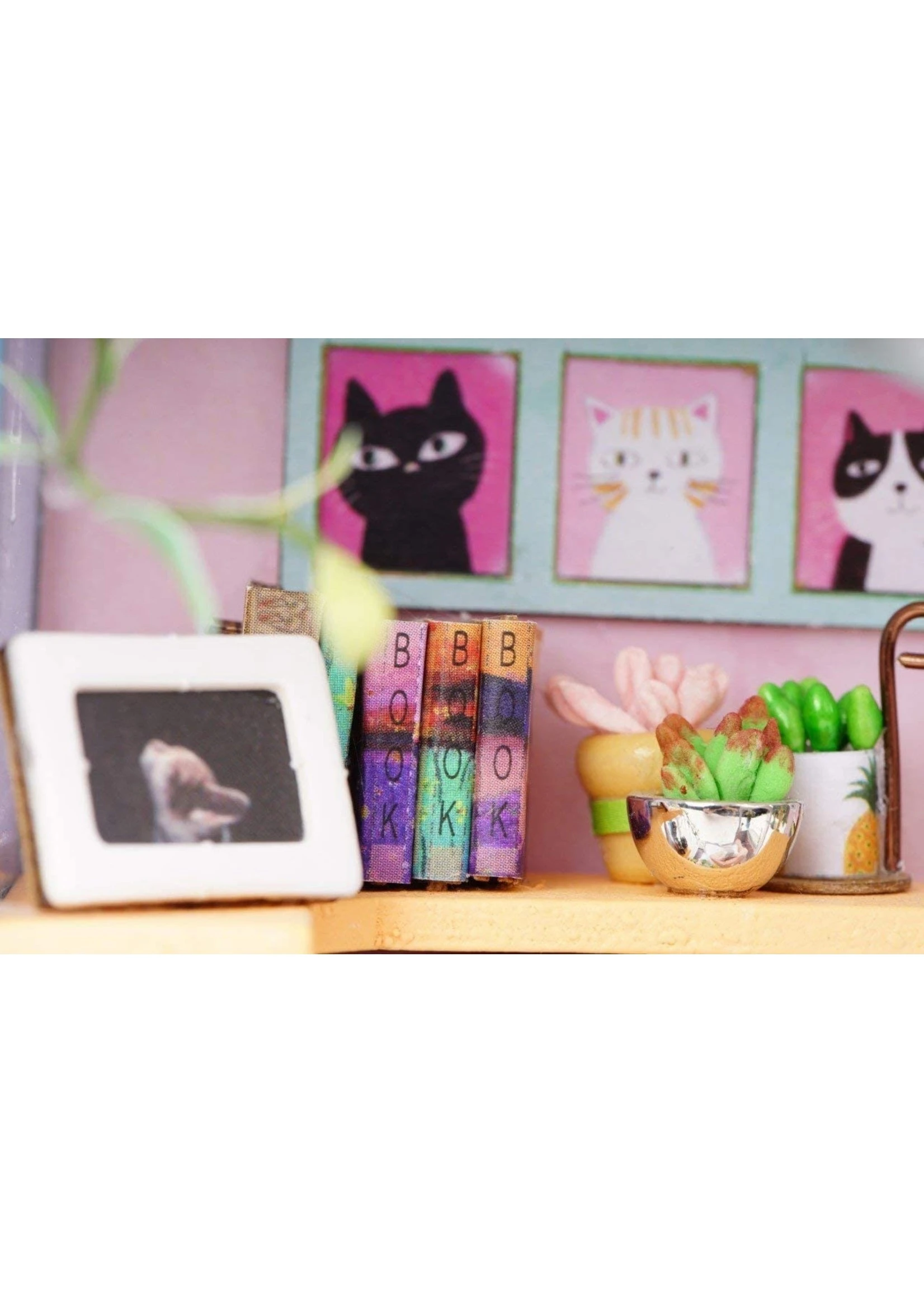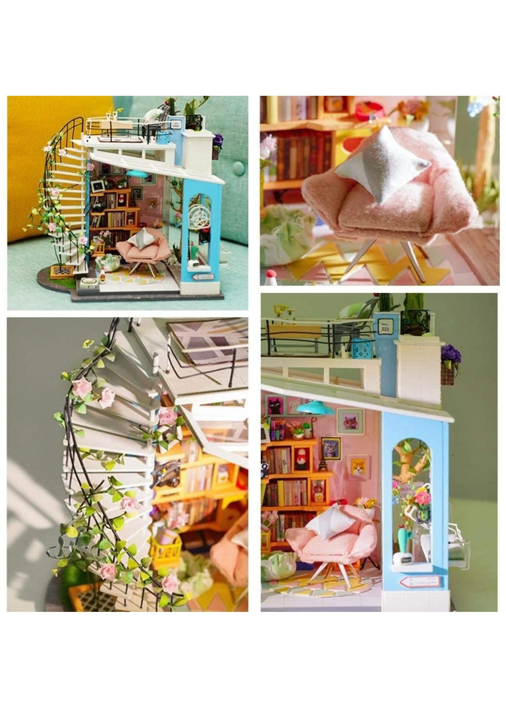 TINY FURNITURE & ACCESSORIES: This model dollhouse room comes equipped with all the necessary tools needed to recreate your own shelf, potted plants, flowers, furniture, and much much more to give you a detail-oriented and well-furnished feel to your loft space. You can even add flooring. With such amazing decor and details, this modern DIY house is sure to impress.