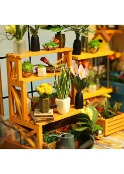 TINY FURNITURE & ACCESSORIES: This model dollhouse room comes equipped with a shelf, potted plants, flowers, 2 doors, vines, pots, gardening tools, and more to give you a detail-oriented and well-furnished feel to your tiny space. You can even add flooring. With such amazing decor and details, this modern DIY house is sure to impress.