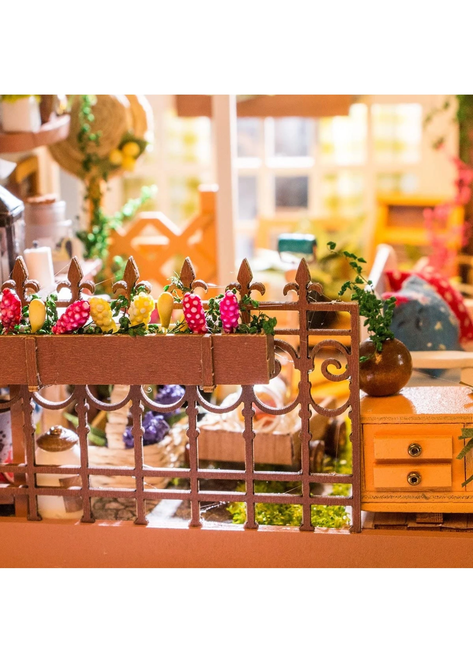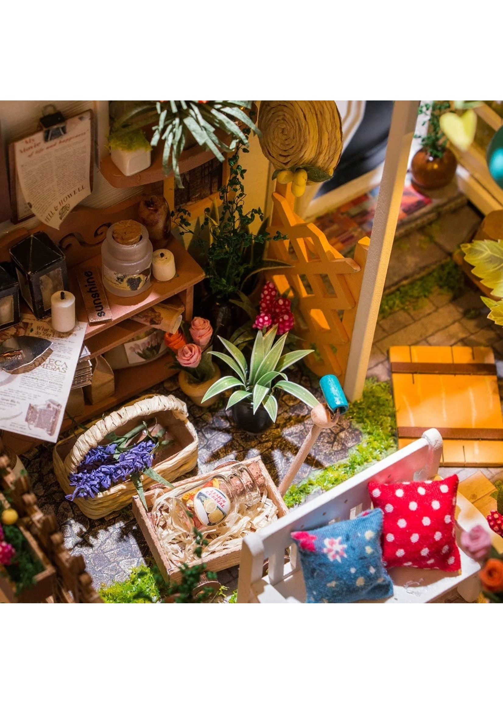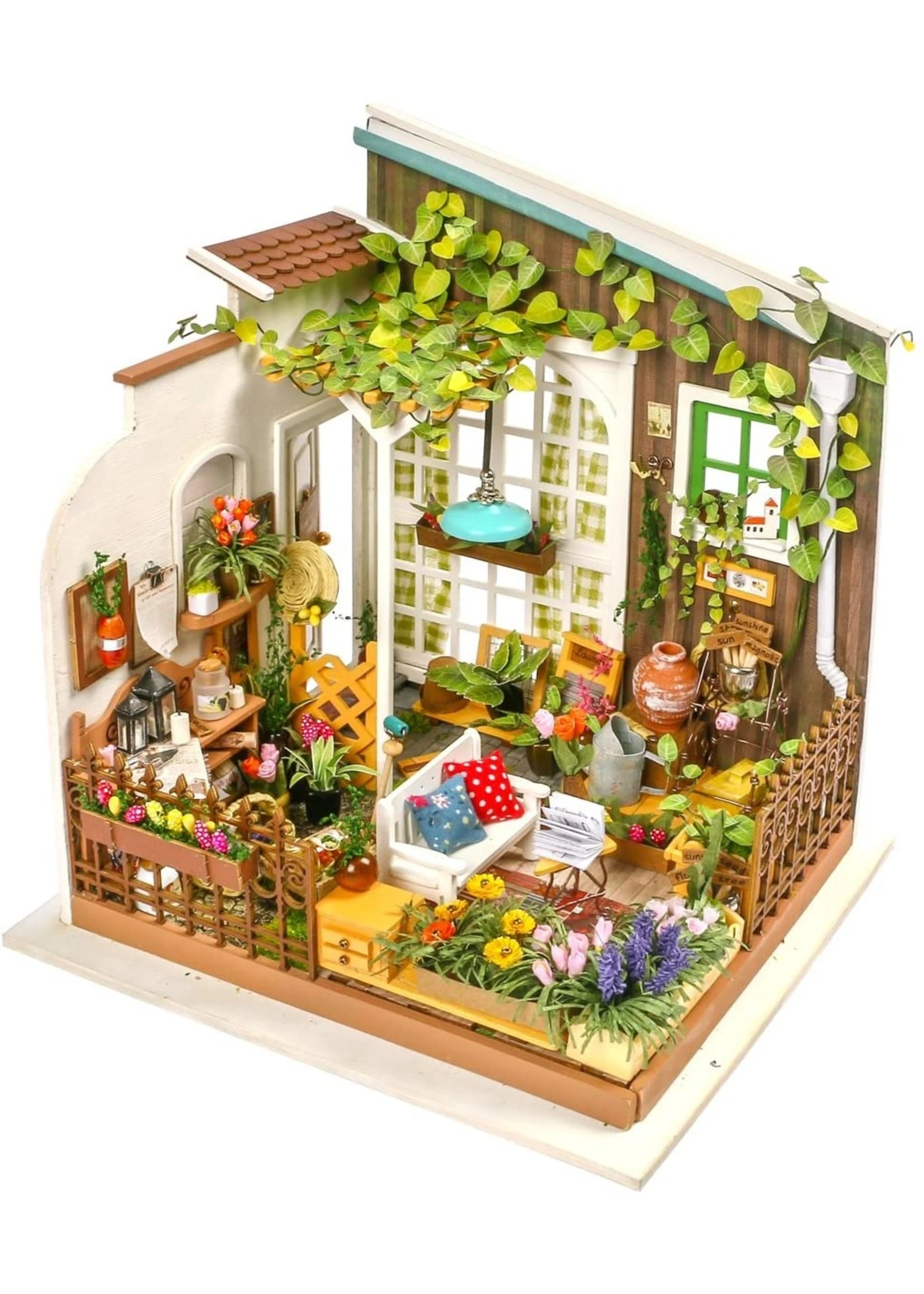 TINY FURNITURE & ACCESSORIES: This model dollhouse room comes equipped with all the materials and tools you need to recreate flowers, plants, pots, garden furniture, and much more to give you a detail-oriented and well-furnished feel to your tiny space. You can even add flooring. With such amazing decor and details, this modern DIY house is sure to impress.