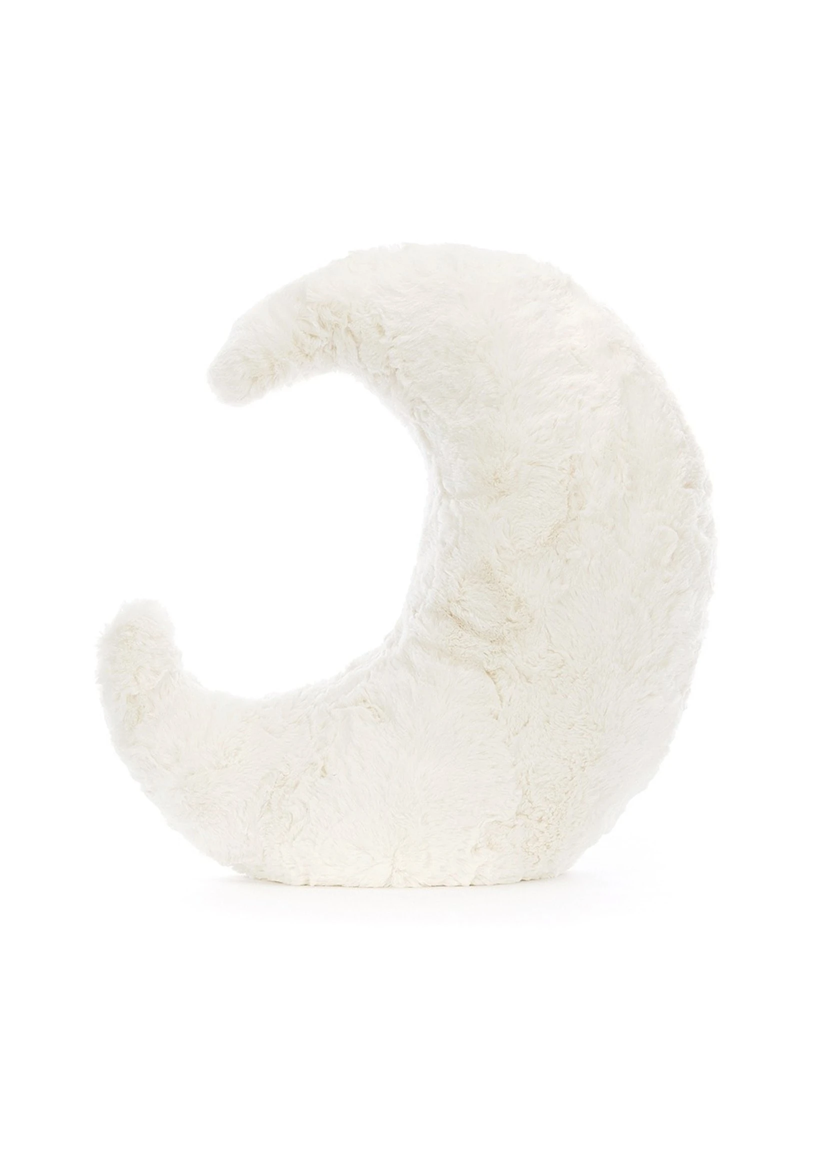 Gorgeously textured with velvety craters, Amuseable Moon is full of fun! A midnight matey for bedtime hugs, this pearly-white pal is curvy and cuddly. With squidgy cord booties, a weighted bottom and a peaceful smile, this moon’s waxing poetic! A magical crescent and a marvellous present.Â