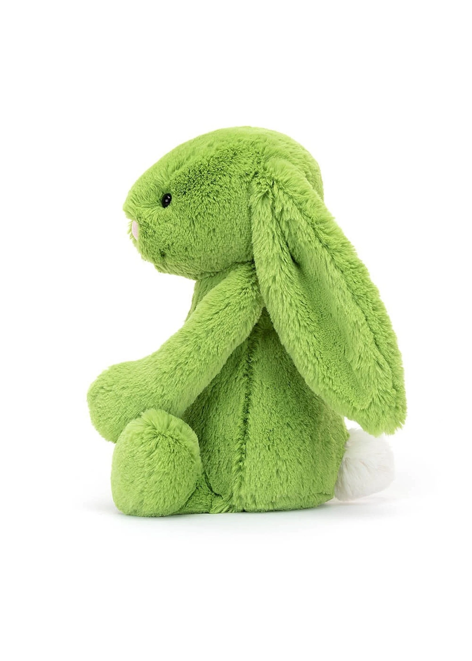 A Bashful Apple Bunny a day keeps the blues away! This funky, fruity friend has the zingiest fur, with chunky paws and waggly ears. A contrast white bobtail and suedey pink nose set off that gorgeous green. A cheery chum to help you remember to munch some nice fresh fruit!Â