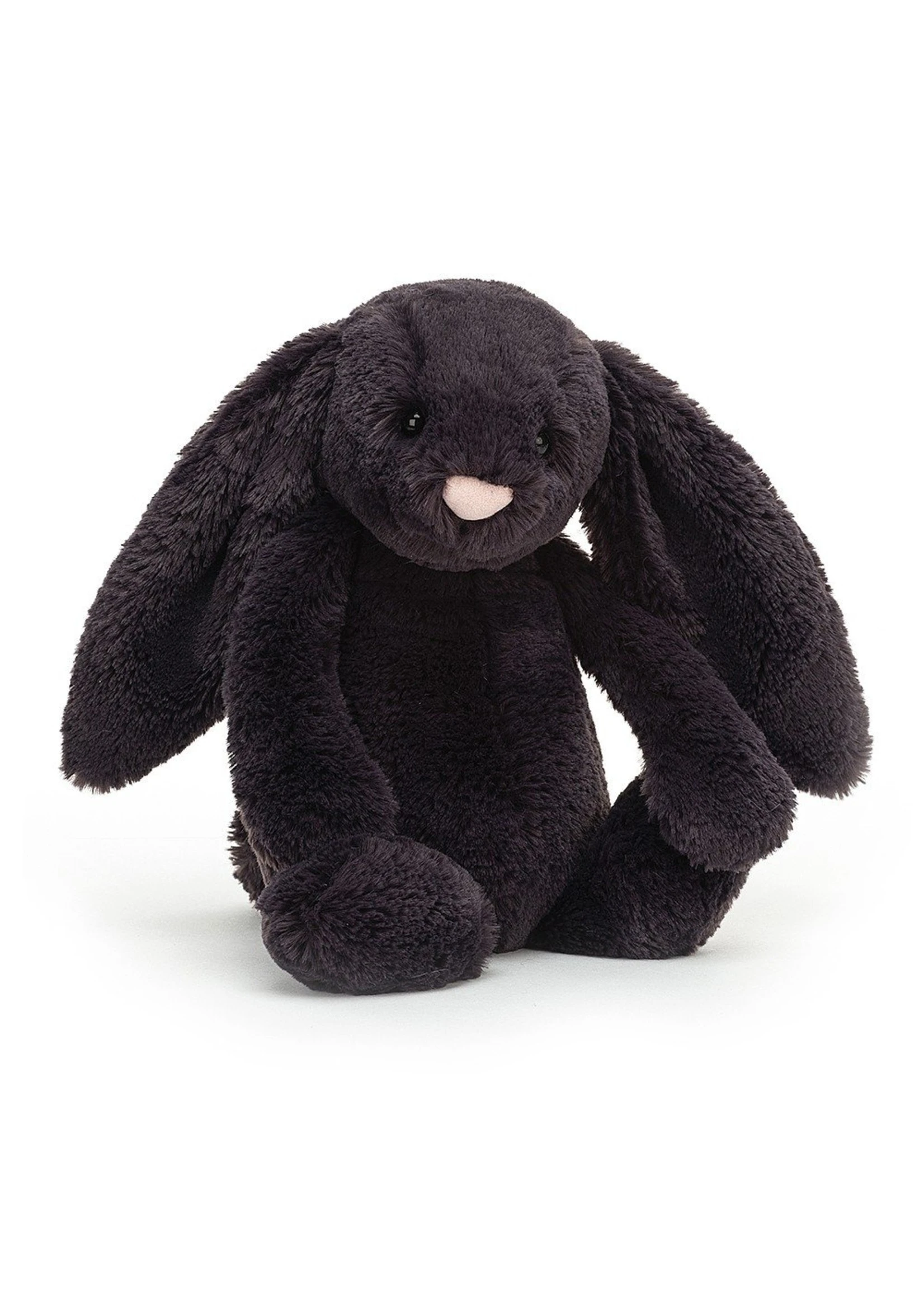 Bashful Inky Bunny is beautifully lopsy in deep black liquorice fur. Soft and friendly with a sugar-pink nose, this curious cutie likes to ramble through the garden. Mud doesn’t show on that yummy dark fur, so bring on the picnics and hill-rolling contests.