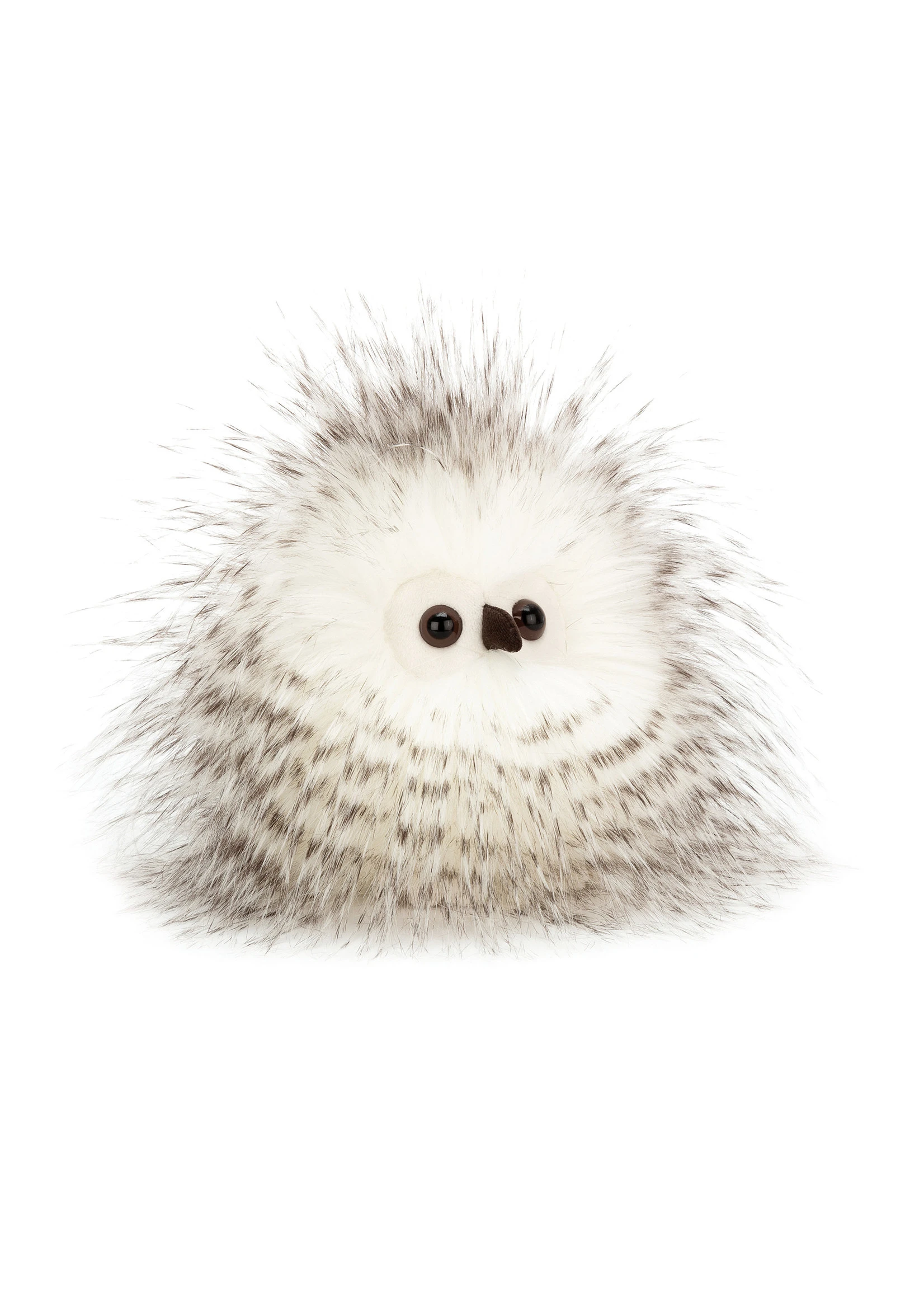 Is it a cloud? A snowball? No, it’s Bertie Owlet, looking fuzzy-fantastic in his fanciest fluff! With silky-soft cream fur, peppered with grey, this chirpy chick is adorably cuddly. Bertie’s proud of his bright, aware eyes and wee cordy beak, and bobbles about through the woods!