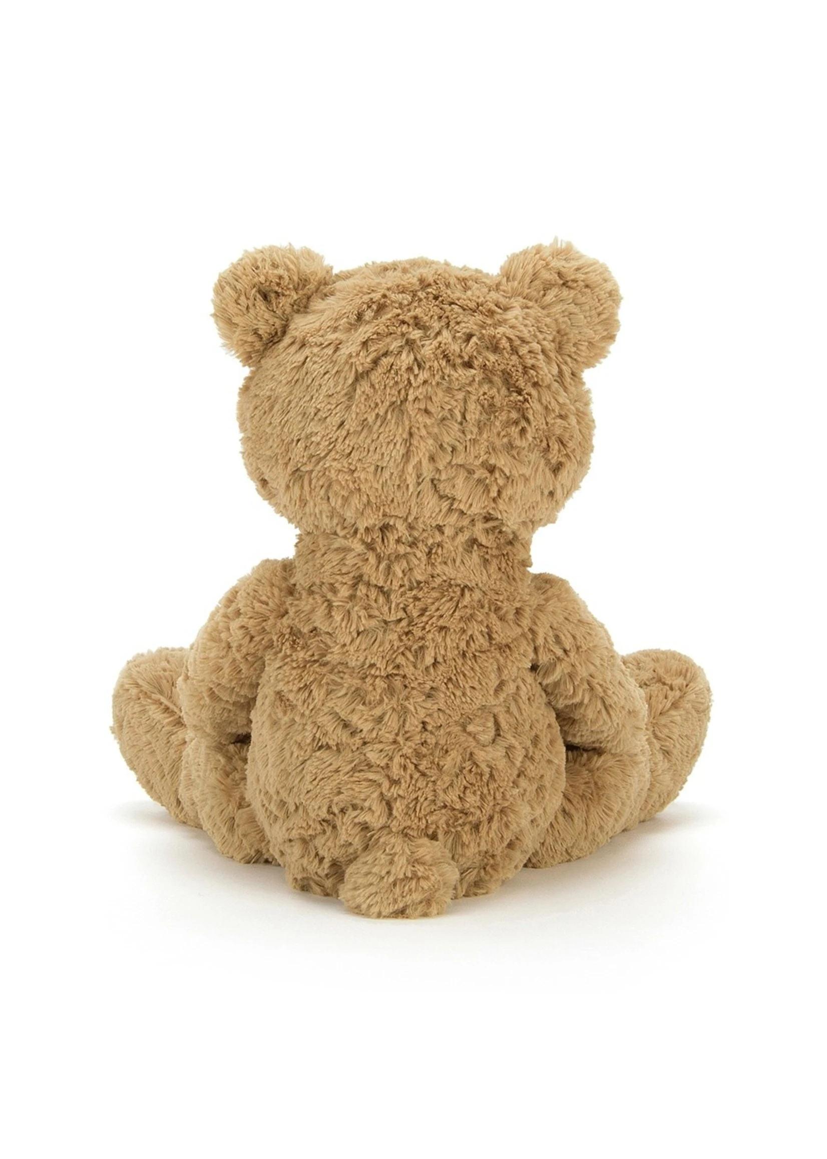 A sandy, dandy teddy, Bumbly Bear is simply scrummy. A ruffly, fluffy fellow with an extra-long snout for vintage style, he’s a classic bear with a modern twist. His large head and tummy and chunky feet make him just the chap for bedtime hugs.