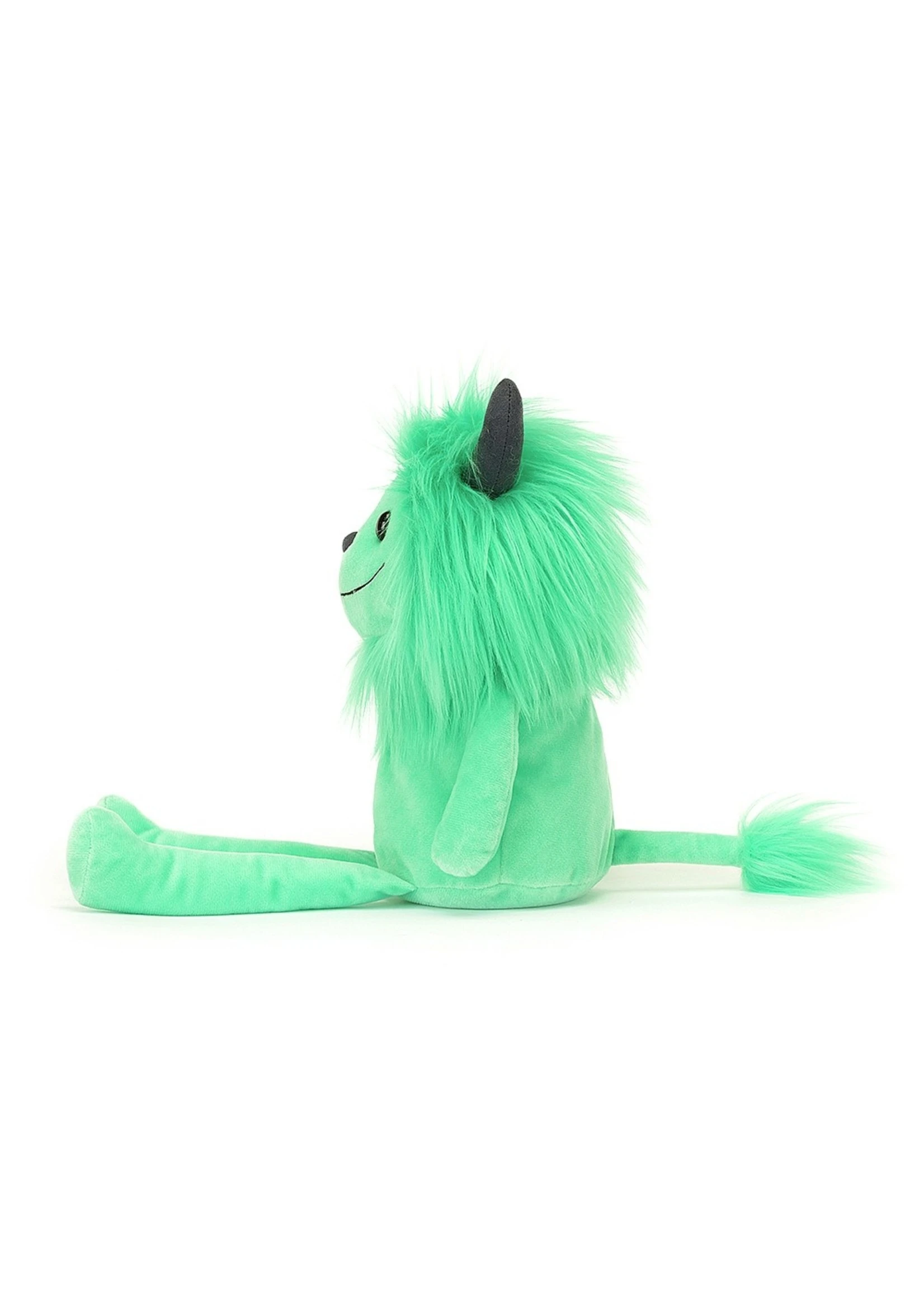 Cosmo Monster is minty-cool, and happy to chill in any snuggly cave! With a scrummy-soft mane and tufty tail, suedey grey horns and skipabout legs, this scamp gives wonderful snuggles. Cosmo prefers sleeping on the pillow to hiding under the bed – very odd for a monster!