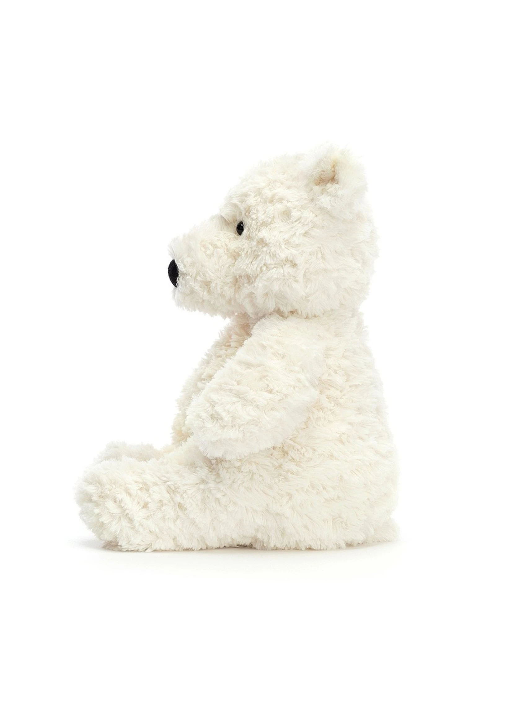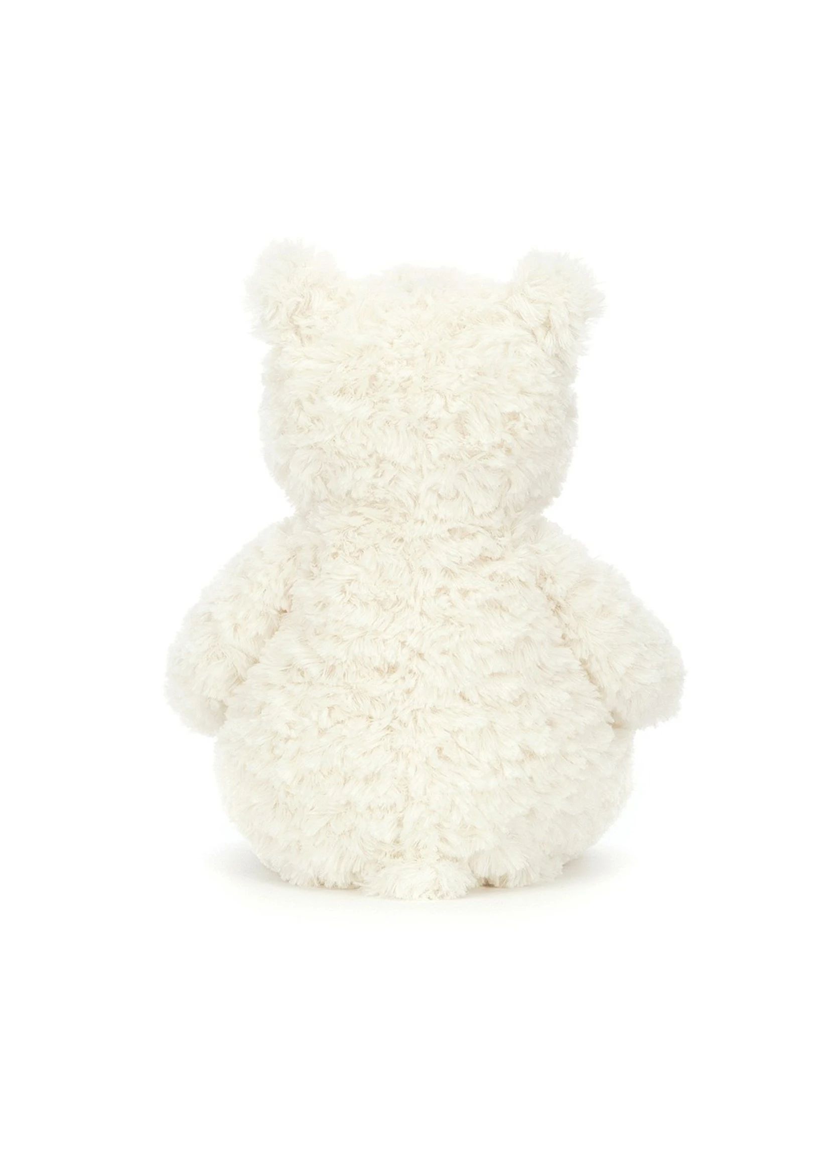 Edmund Cream Bear is so soft and sweet, we thought he was made of coconut gelato! Sturdy and tufty with teeny fold ears, a beany bottom and squishable paws, Edmund’s got a fine snuffle-snout and a bobbly inkdrop nose! Ramble through the snow with this fuzzy cub.