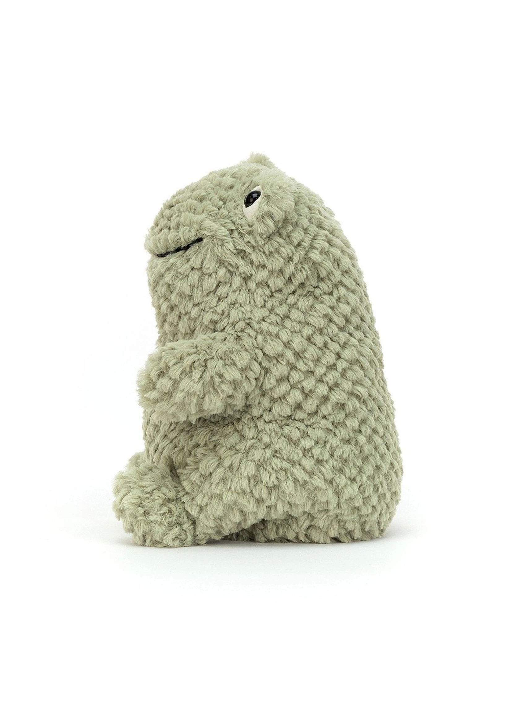 Flumpie Frog is the grinningest scalliwag you ever did see! What’s tickled this tousled chum? We don’t know for sure, but those boggly bright eyes, diddy ams and legs, tufty fern coat and merry face are bound to win anyone around! Just try resisting it!