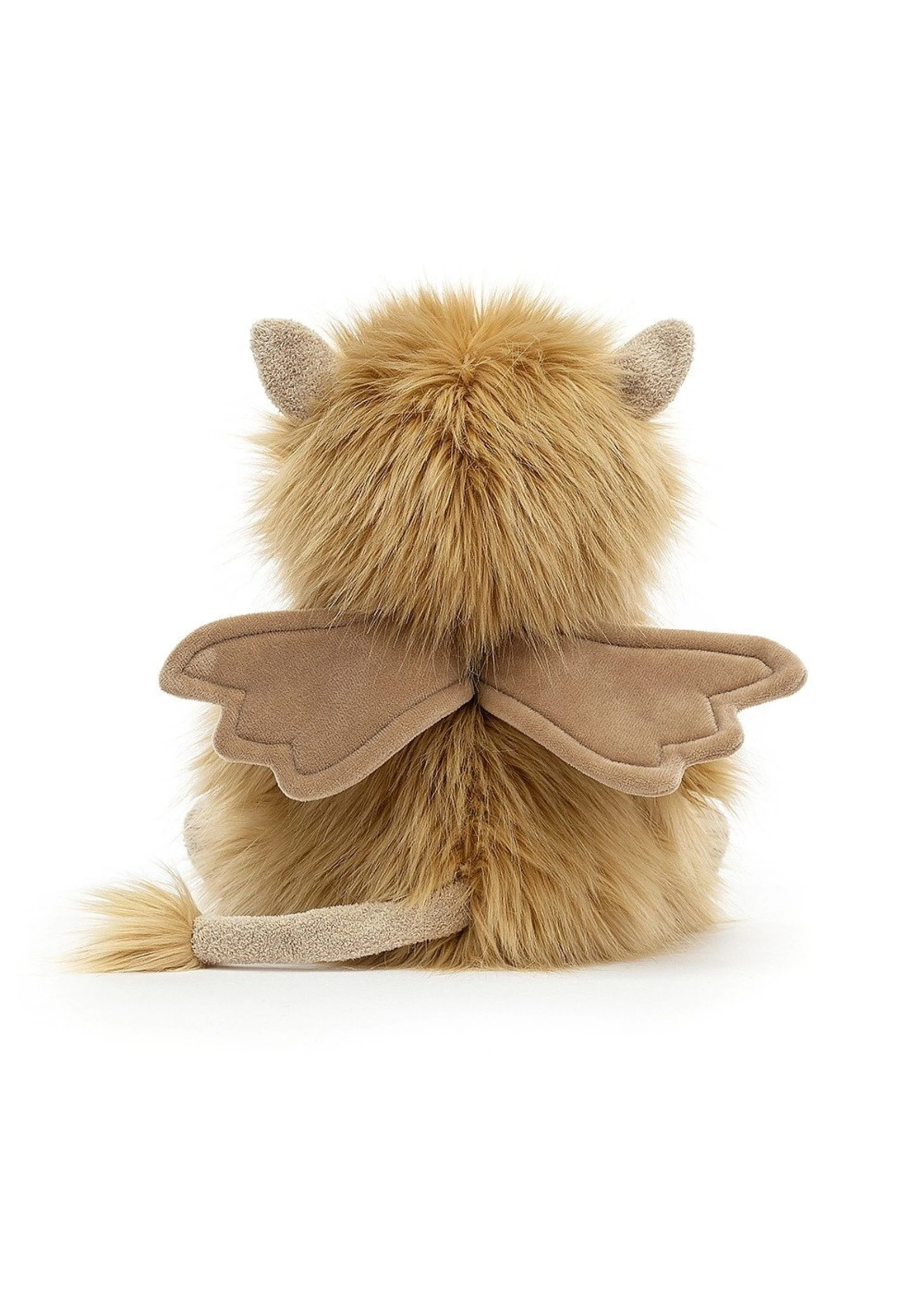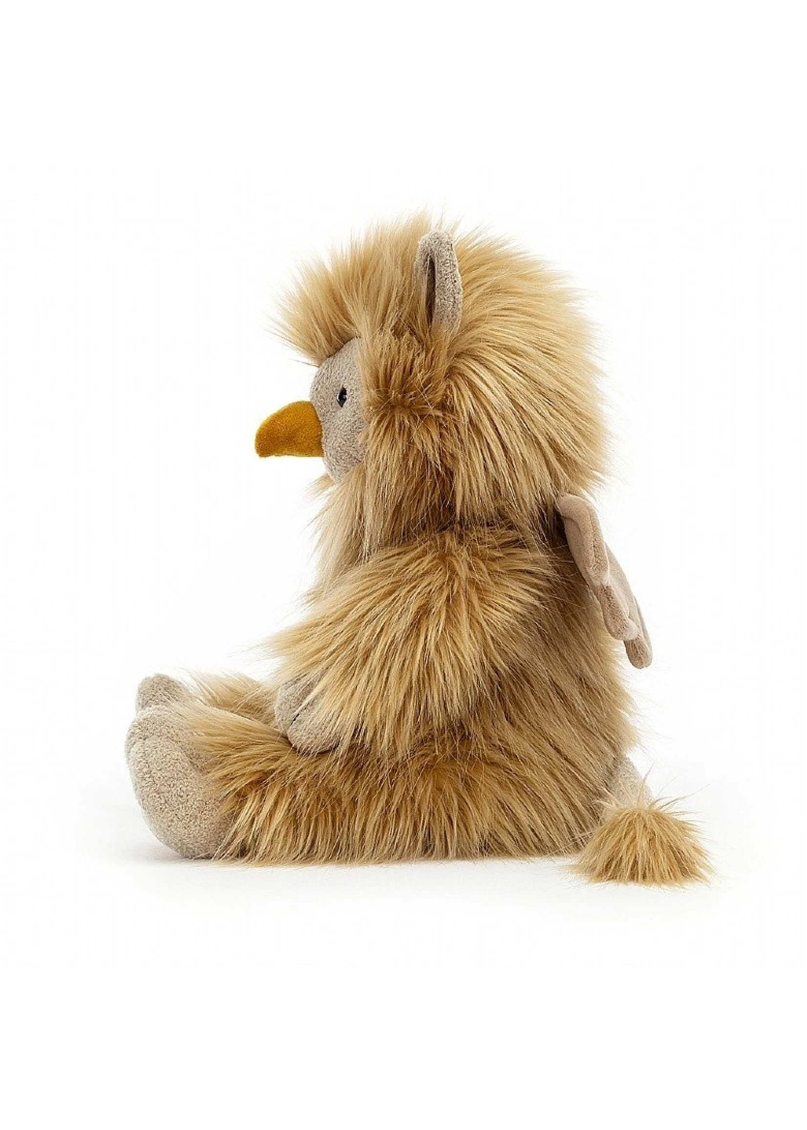 Gus Gryphon feels a bit mixed up, and doesn’t know quite what he is! He’s got waggly ears, a silky mane, a golden beak, suedey wings, a tasselyl tail and chunky nougat paws. This fuzzy funny may be a bit jumbled, but we think he’s simply fabulous.