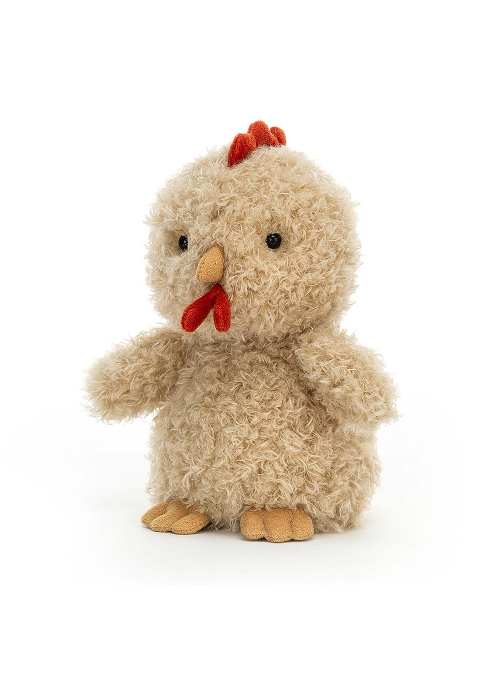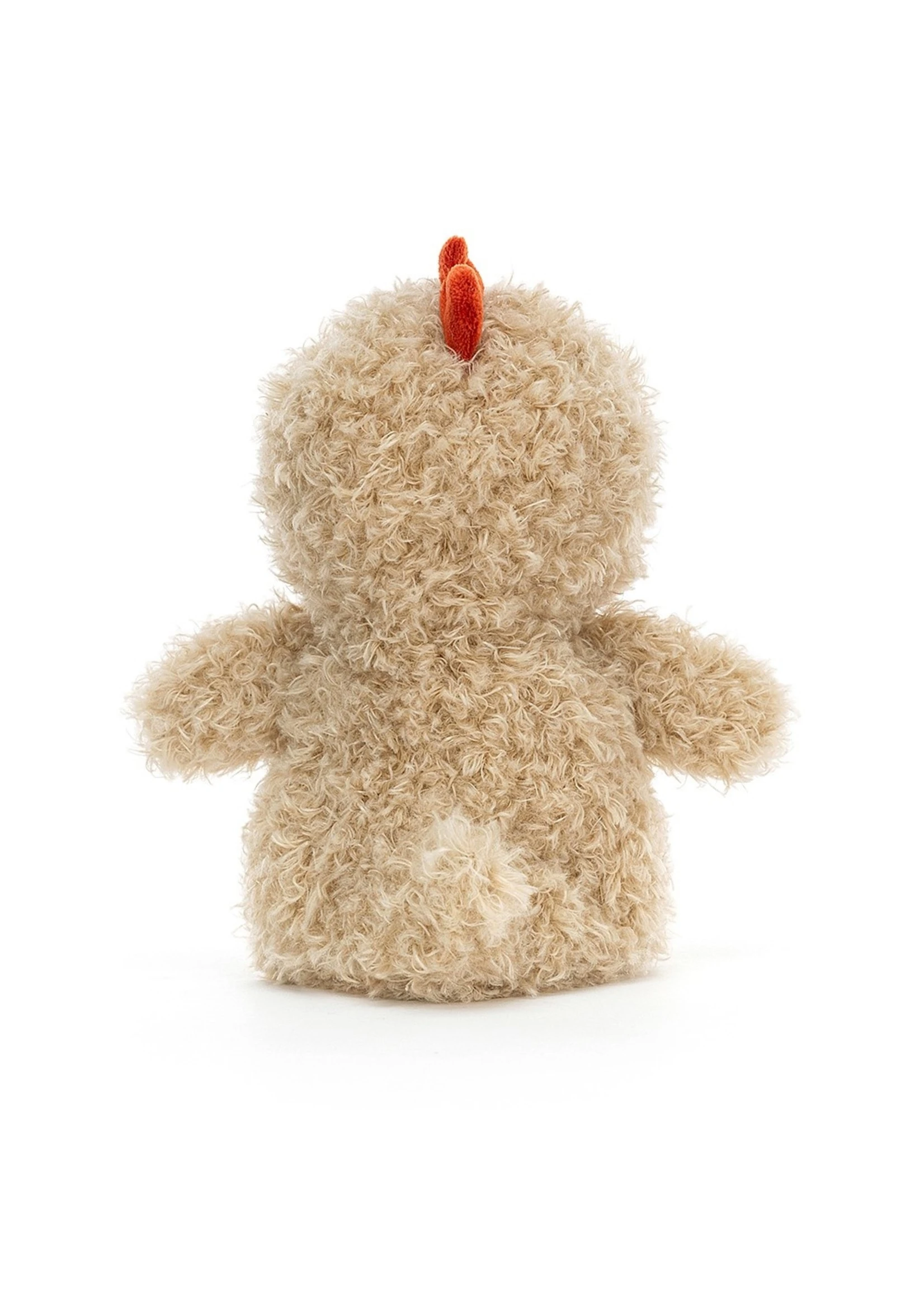 Cock-a-doodle-doo? Little Rooster is practising hard but can’t manage more than a squeak! This tumbly oatmealy chick is too teeny to wake up the farm just yet, no matter how hard those wee wings are waggled! A barnyard cutie with a suedey scarlet comb and itty-bitty golden feet.