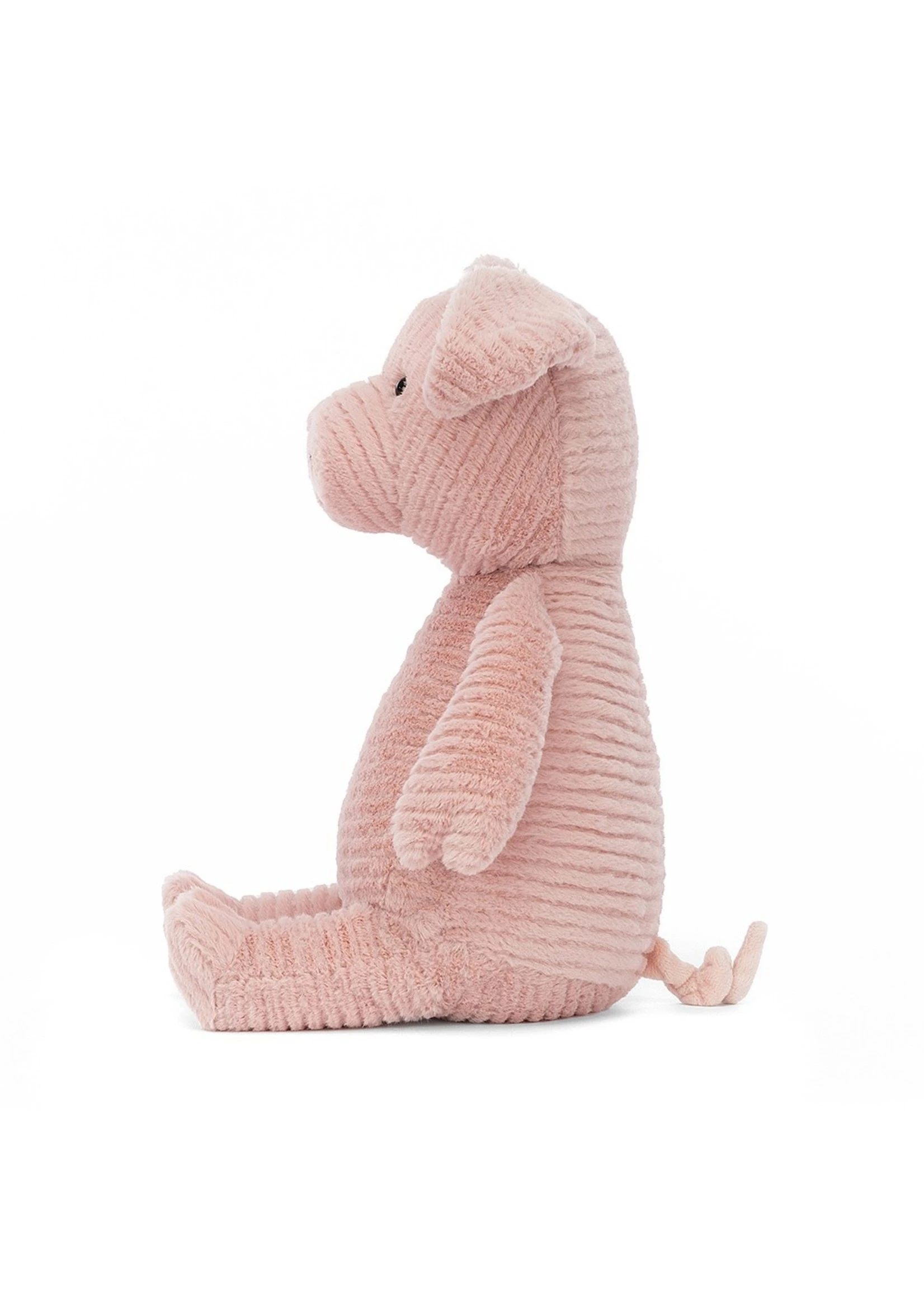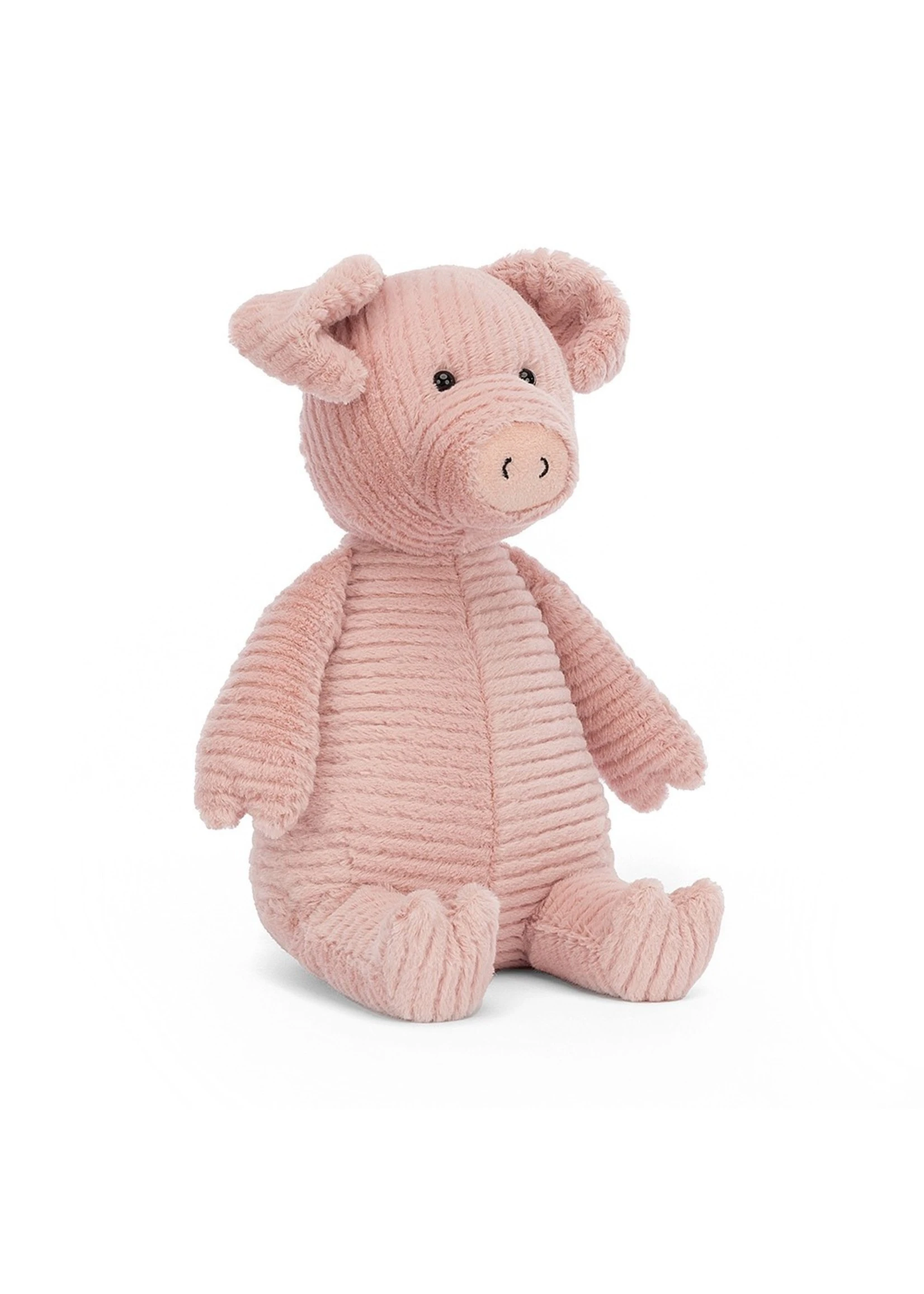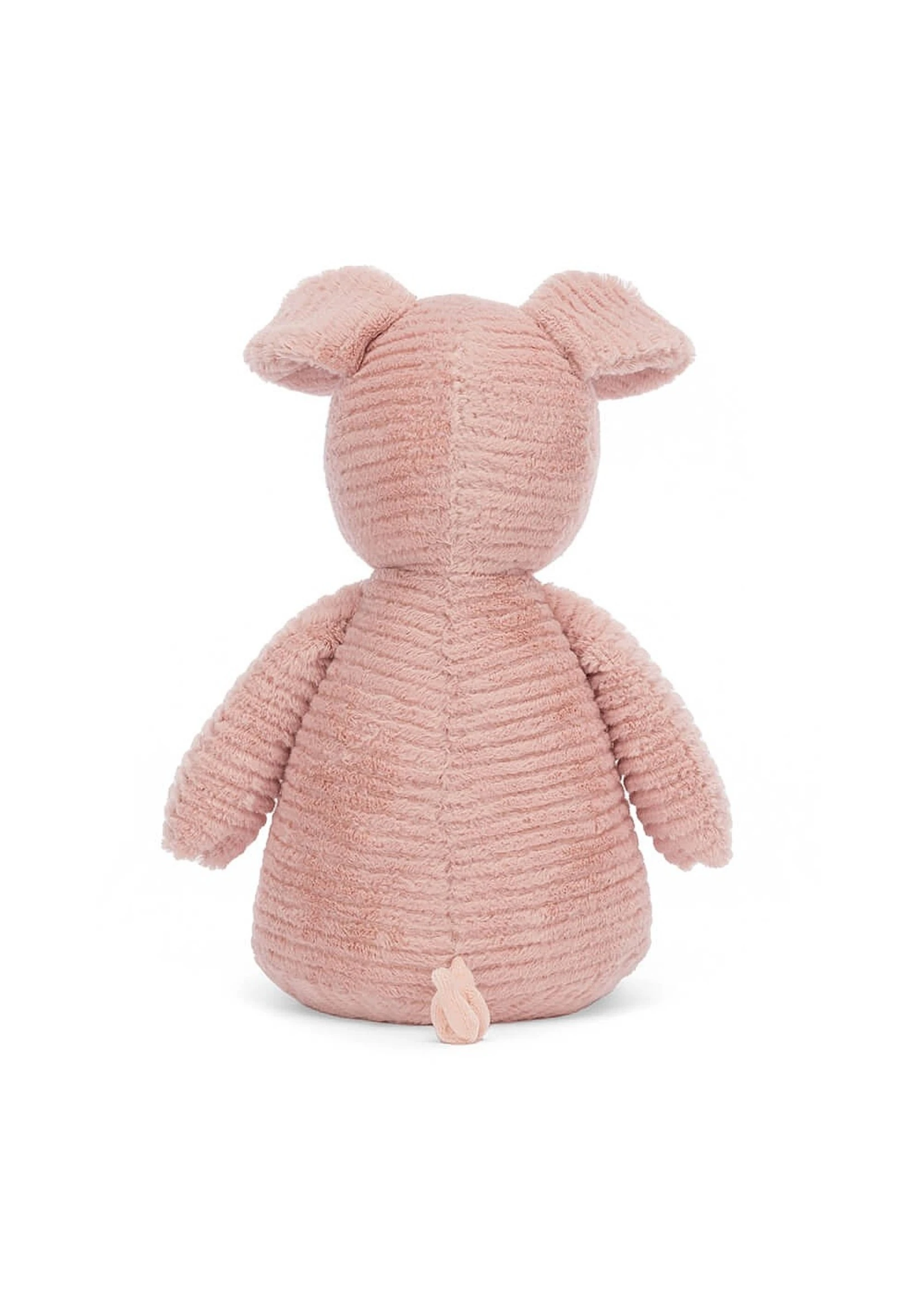 Did you ever see such twizzly ears? Quaxy Pig is starting farmyard fashion trends! Smoothie-pink in scrummy faux-cord, this posy piglet is a bedtime pal. With a springy curled tail and soft, squidgy trotters, bright inky eyes and a suedey snout, this podgy piggy goes hee-hee-hee, all the way home with you!