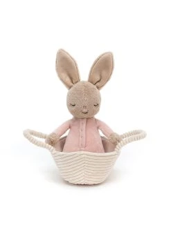 Rock-a-Bye Bunny is a peaceful poppet, dozing in a cordy beige basket. If you’re very gentle, you can pick up this pippin for a teeny-tiny bedtime cuddle. With praline fur, a sweet pink onesie, sleepy stitch eyes and petal ears, this hoppity hon’s dreaming of yummy lettuce!