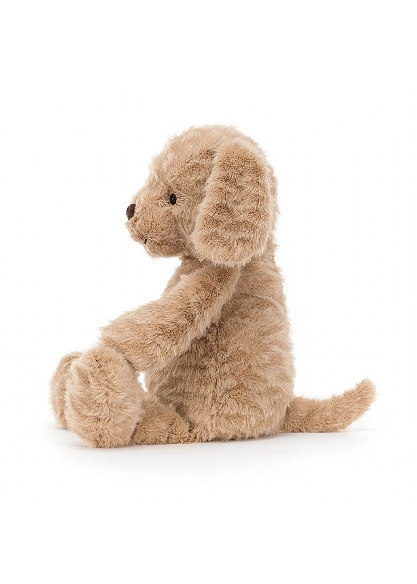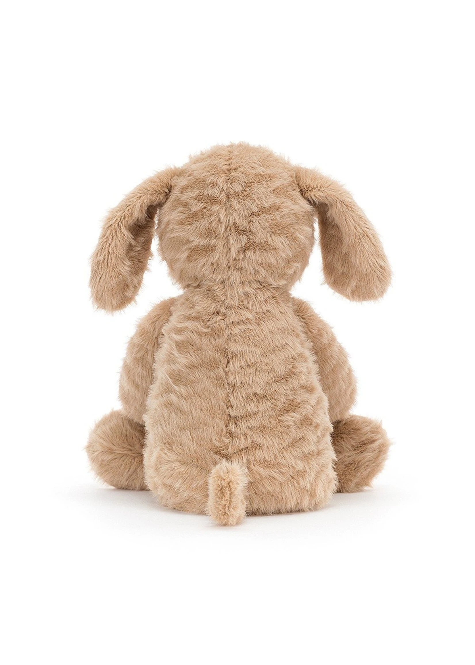 How many times has Rolie Poly Puppy tumbled? Never mind – just a bit more tousled! This praline pal is full of mischief and loves to ride in buggies and pockets! With a waggy tail, floppy ears and chocolate button nose, this chunky-pawed pup is scruffly-splendid.