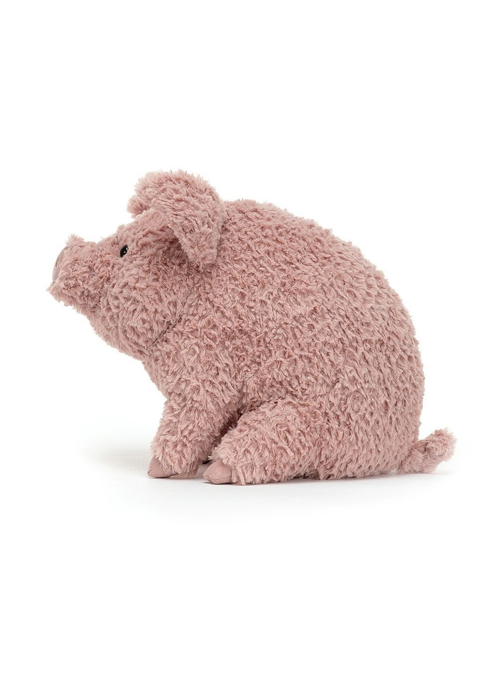 Roundy-rumpled and peacefully ponderous, Rondle Pig is a barnyard beaut. Charmingly chubby in tussled pink fur, this sturdy sweetie loves to snuggle in the straw. With foldy ears, a soft suedey snout and teeny trotters for occasional ambles, our piglet’s huggably podgy.