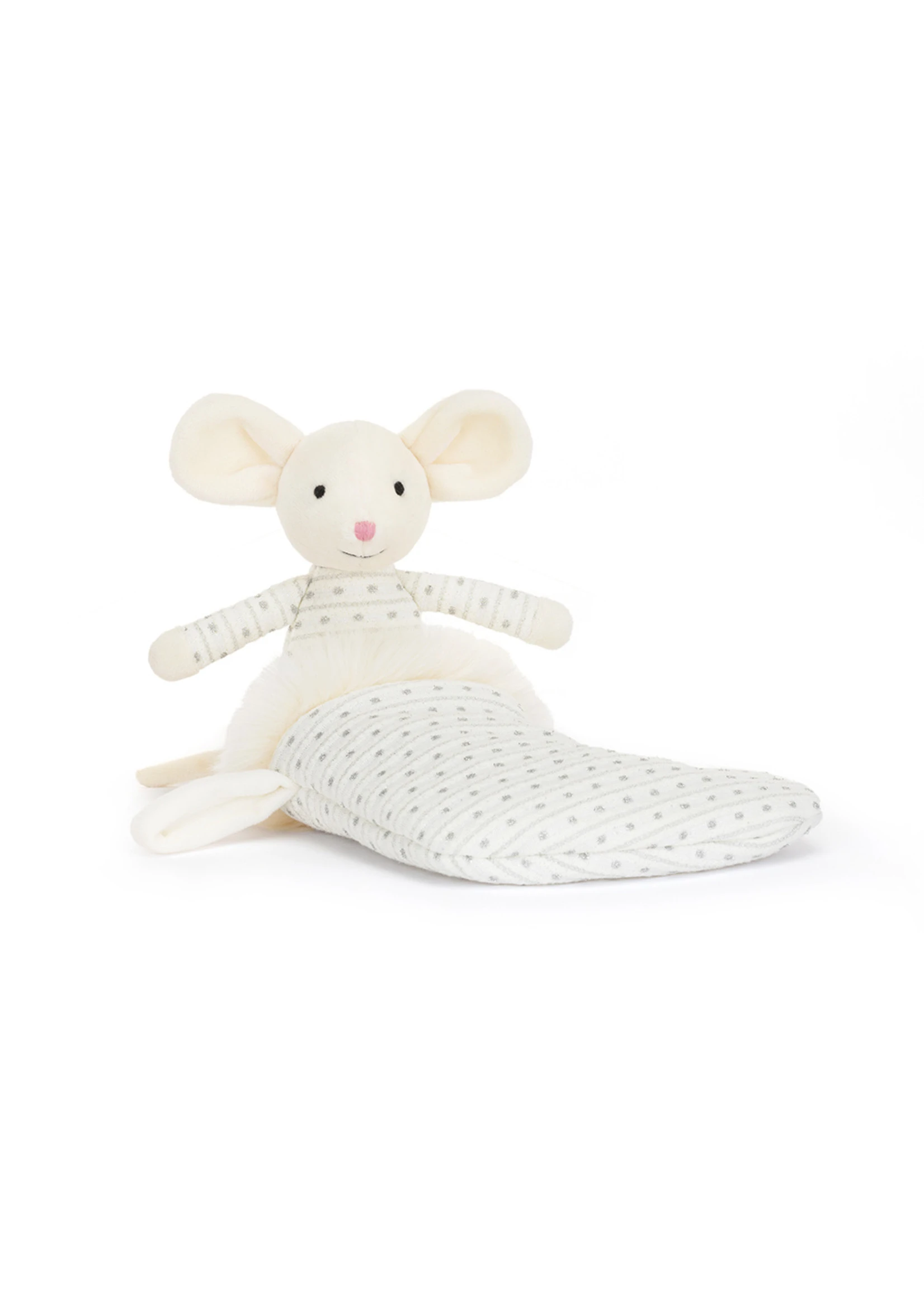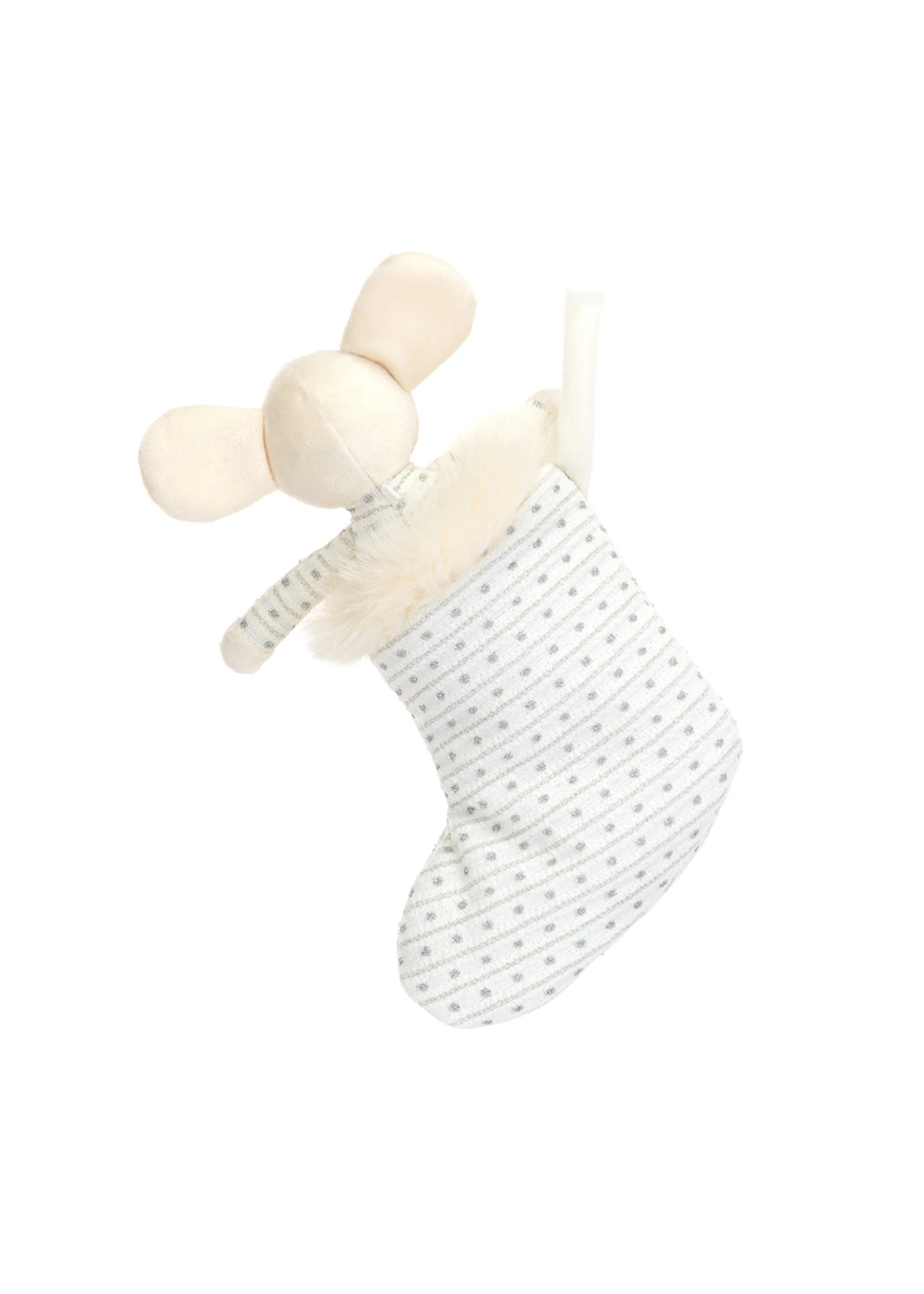 Shimmer Stocking Mouse can’t wait to curl up in a silver padded stocking with glittery stripes! This wriggly sweetie has round creamy ears and PJs that match their fancy stocking. Give this mouse a goodnight hug then tuck them up for very squeak dreams!