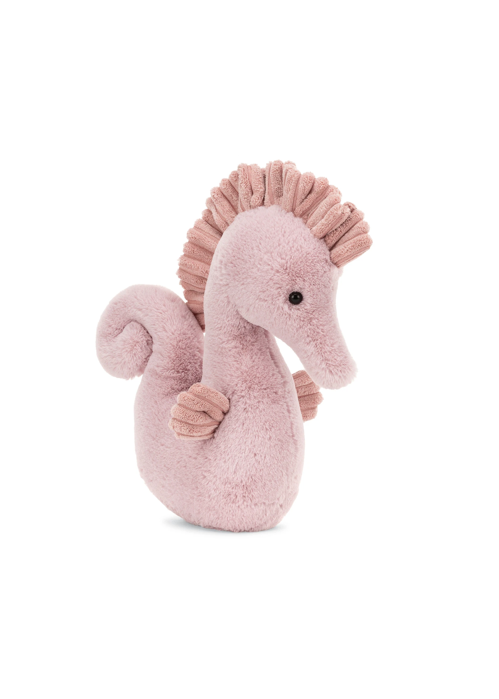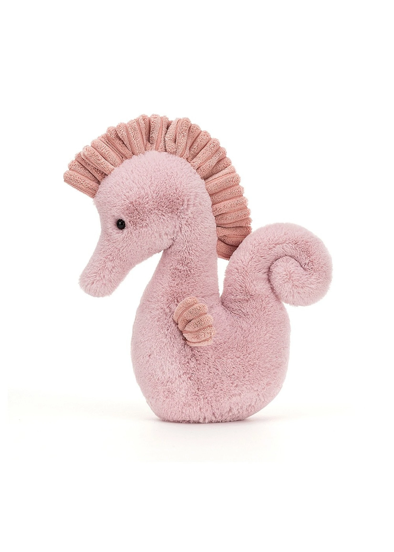 Divinely dainty in soothing pastels, Sienna Seahorse is a kooky, curly cutie! Squeezably soft in ice-cream pink, with a cordy mane and matching fins, this swirly-tail seahorse loves to graze on sweet seaweed. Would you care for a sprig?