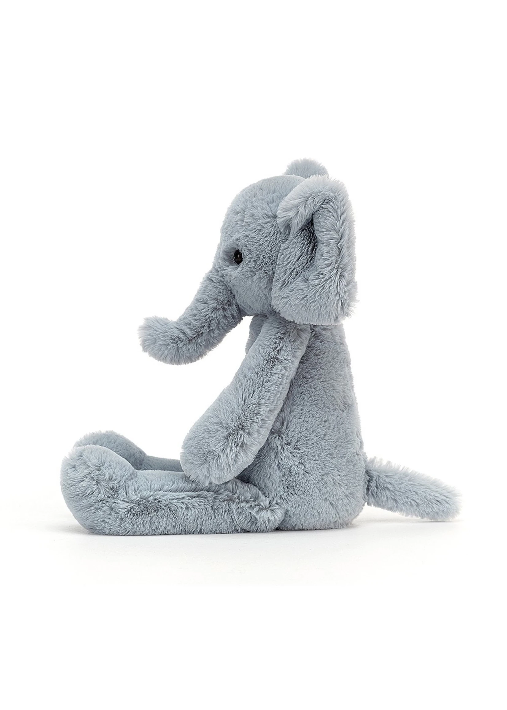 Bobbie Elly is soothingly muted in dreamy baby-blue fur. Sleepy and flopsy with foldy ears and a teeny elly tail, this trunky trinket gives heavenly hugs with those chunky pastel paws. Calming and charming for peaceful naptimes.