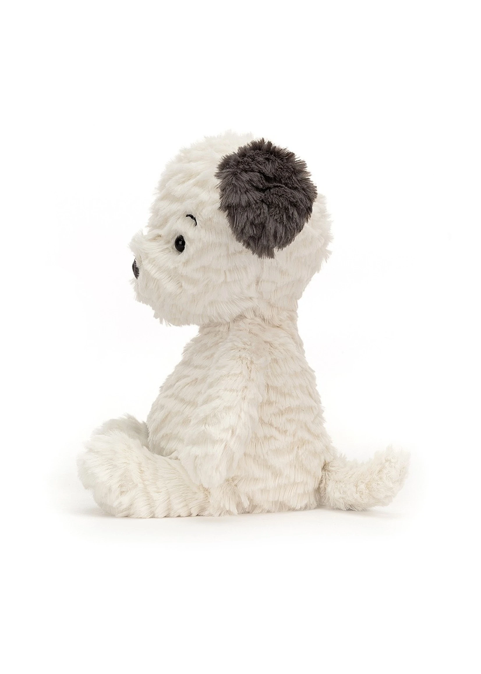 For a mini companion who gives mighty hugs, pop Squishu Puppy in the buggy! This cloudy-soft cutie has flopsy grey ears, a splendid splodge patch and a round little tum (possibly from chomping treats)! Tussled, tumbled and a tiny bit ticklish!