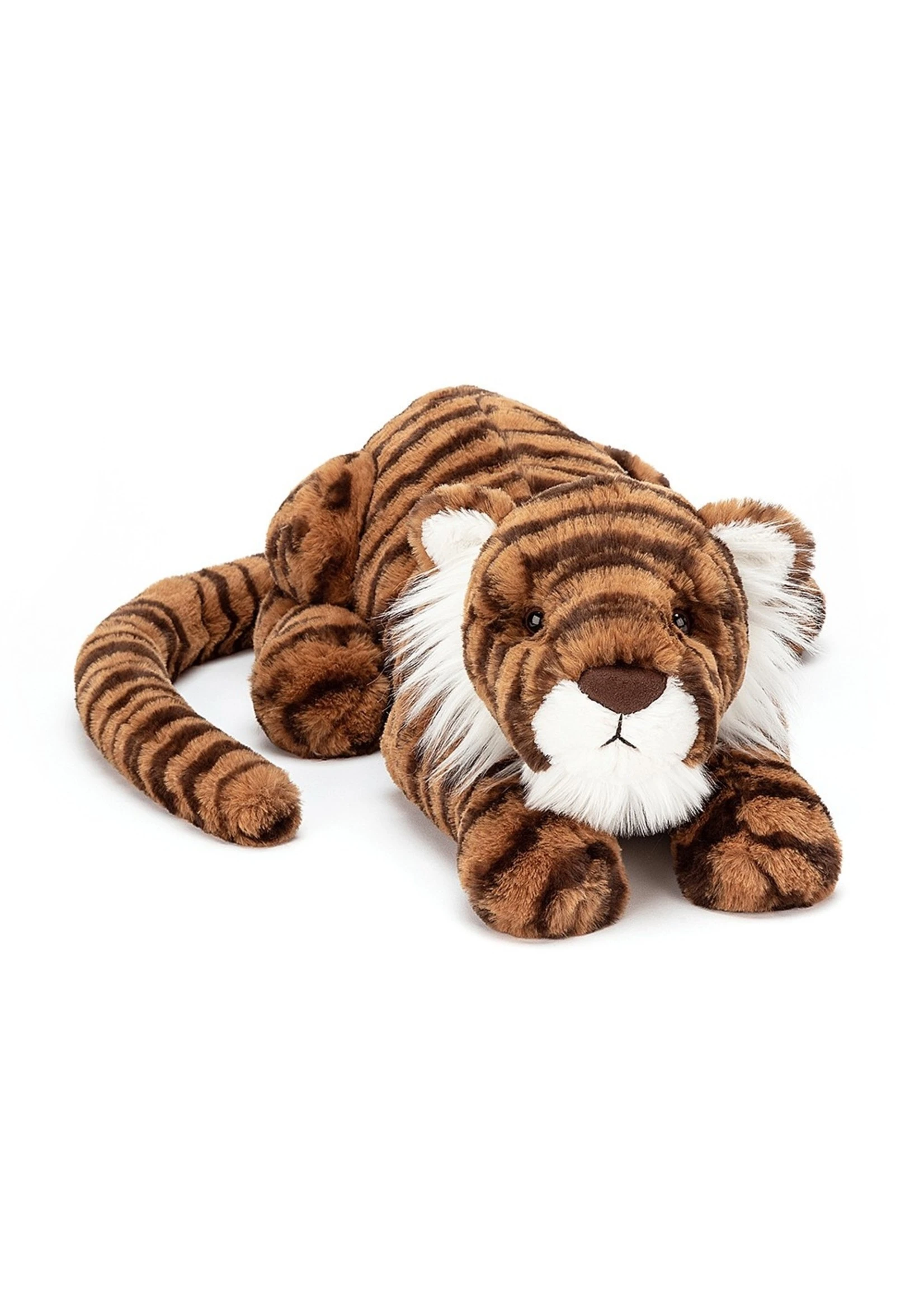 Tia Tiger is only a cub, but she’s super-brave and likes to stand out! This stripey-soft sweetpea has black-and-amber fur, a long tiger tail and scruffly cheek tufts! She’s a flopsy friend who likes to give shoulder snuggles, or sit on her haunches, waitin
