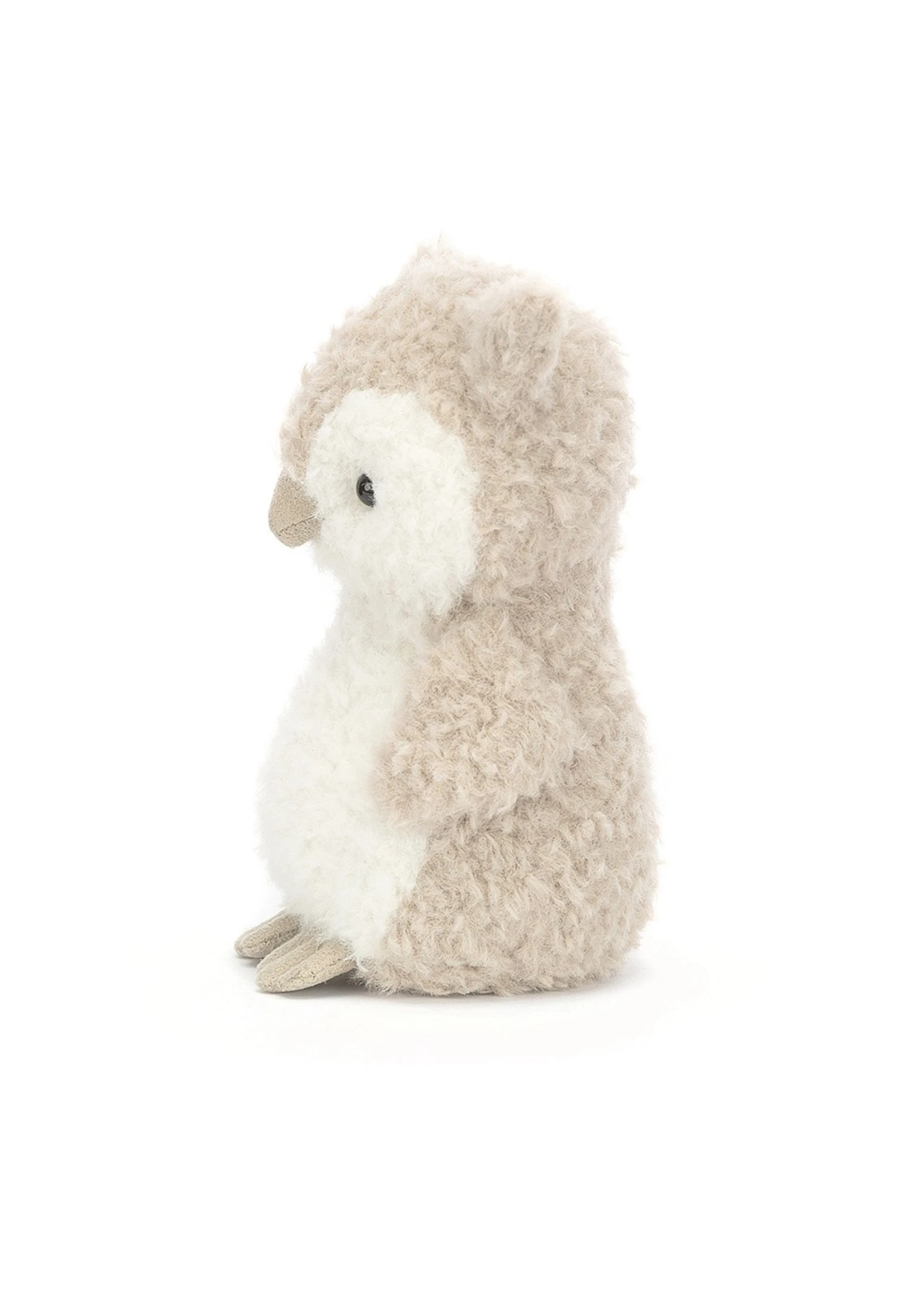 A sweet companion for sleepyheads, Wee Owl is a tumble of cream and grey tussles. Neat and petite, this shy little bird has fine flappy wings and a suedey pebble beak. With teeny tufts, squashy-soft claws and a roundy tum, Wee Owl is dreamy to cuddle.