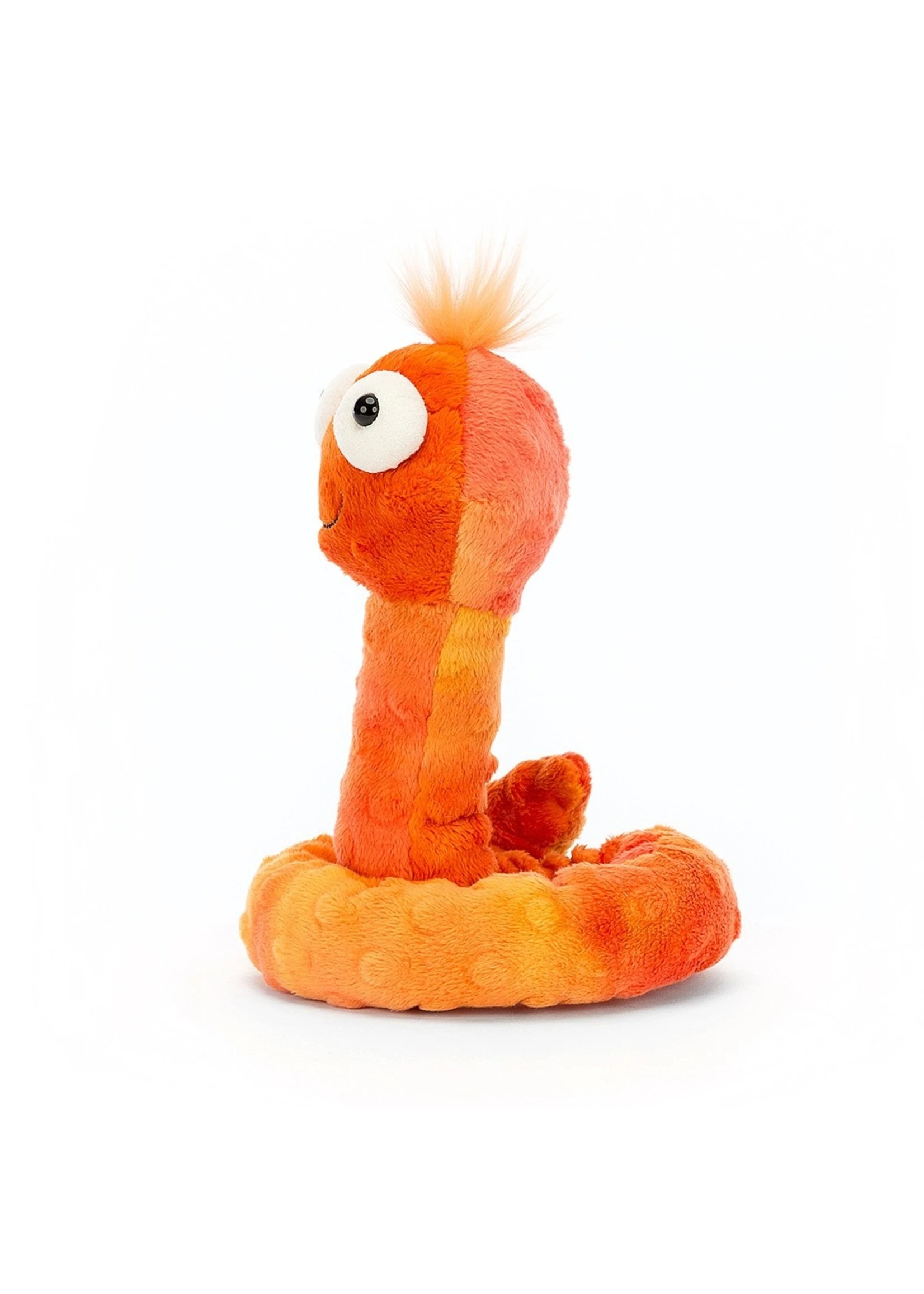 Look who’s popped up to say hallo! It’s squiggly superstar Winston Worm! With big bobble eyes, a silly smile, a tufty hairdo and fiery fur, Winston’s an underground hit! Neatly curled and keen to make friends, this warm-hearted worm is the gift for little gardeners.Â