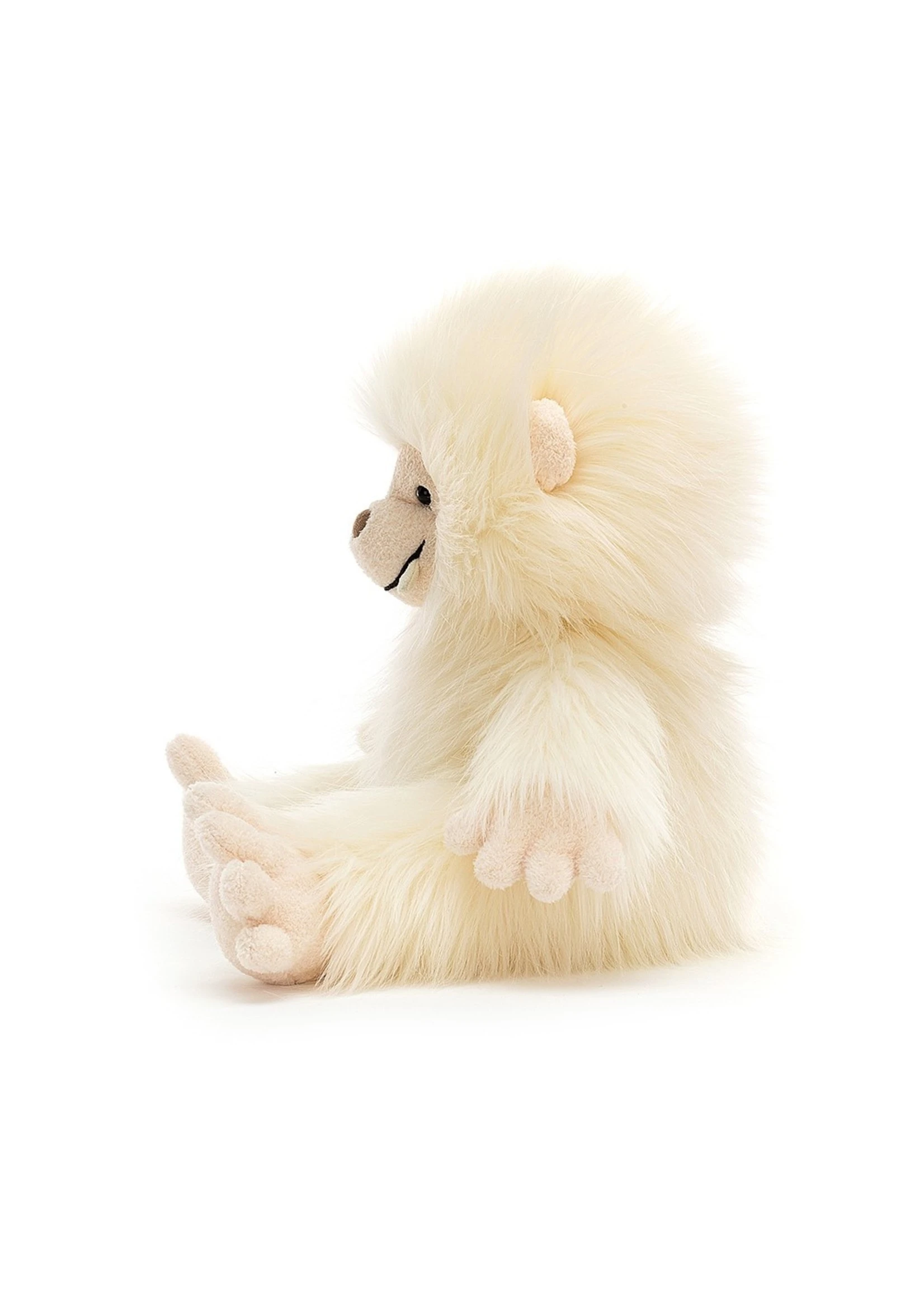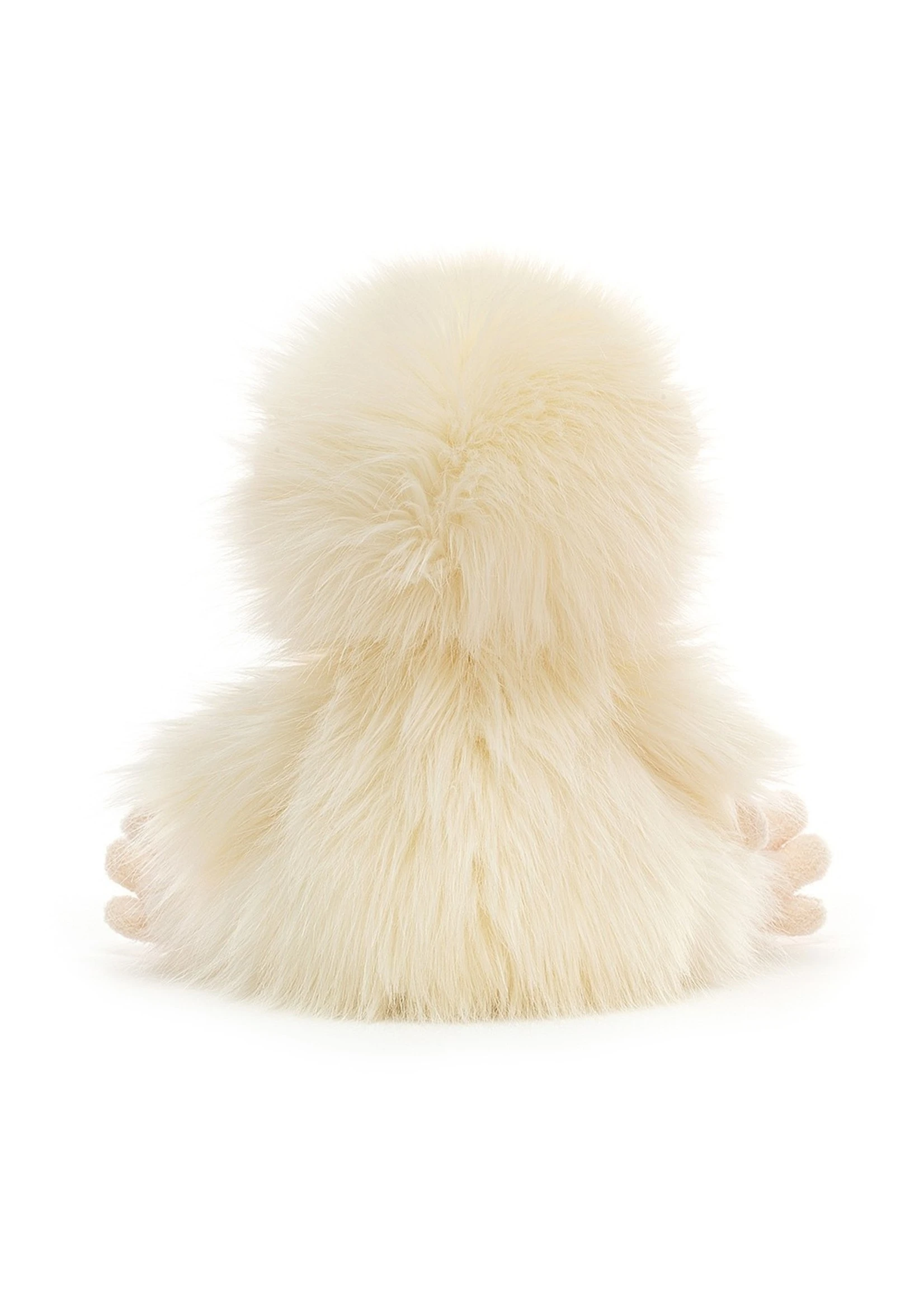 What a goofy, toofy smile! Yani Yeti goes roaming through the snow, the frosty wind blustering that creamy fluffy fur! With knobbly peachy fingers and toes and soft suedey fangs, this affable pal is abominably cute!