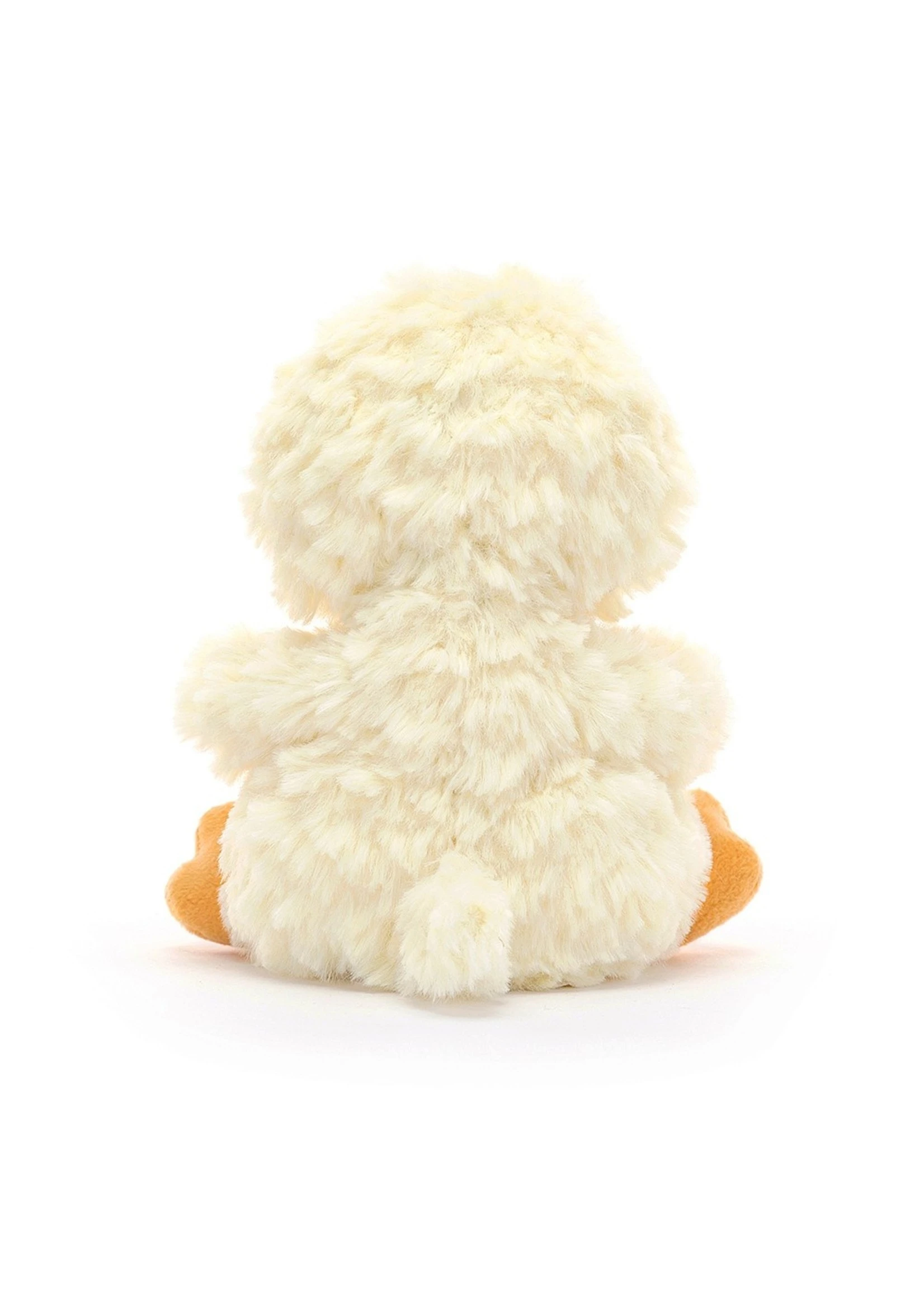 Yummy Duckling is the happiest hatchling in scrambled-egg yellow fur. Our waddling wonder has a golden beak and feet, tickly tum and waggle wings. This diddy duck is too little to fly, so give them a lift in your pocket or bag! To the pond, and make it quacky