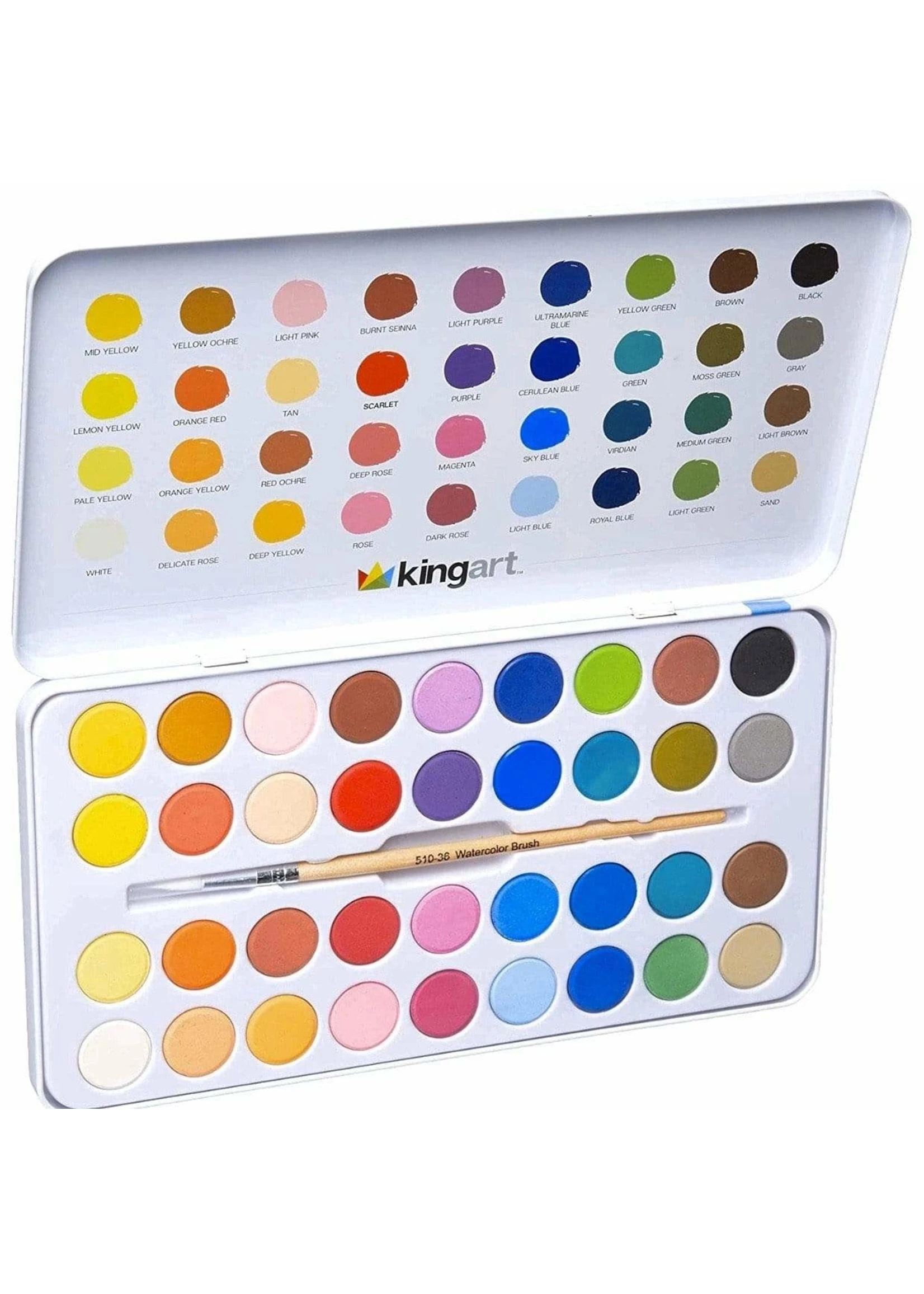 KINGART 510-36 – Watercolor Paint Set in Tin – 36 Unique Colors