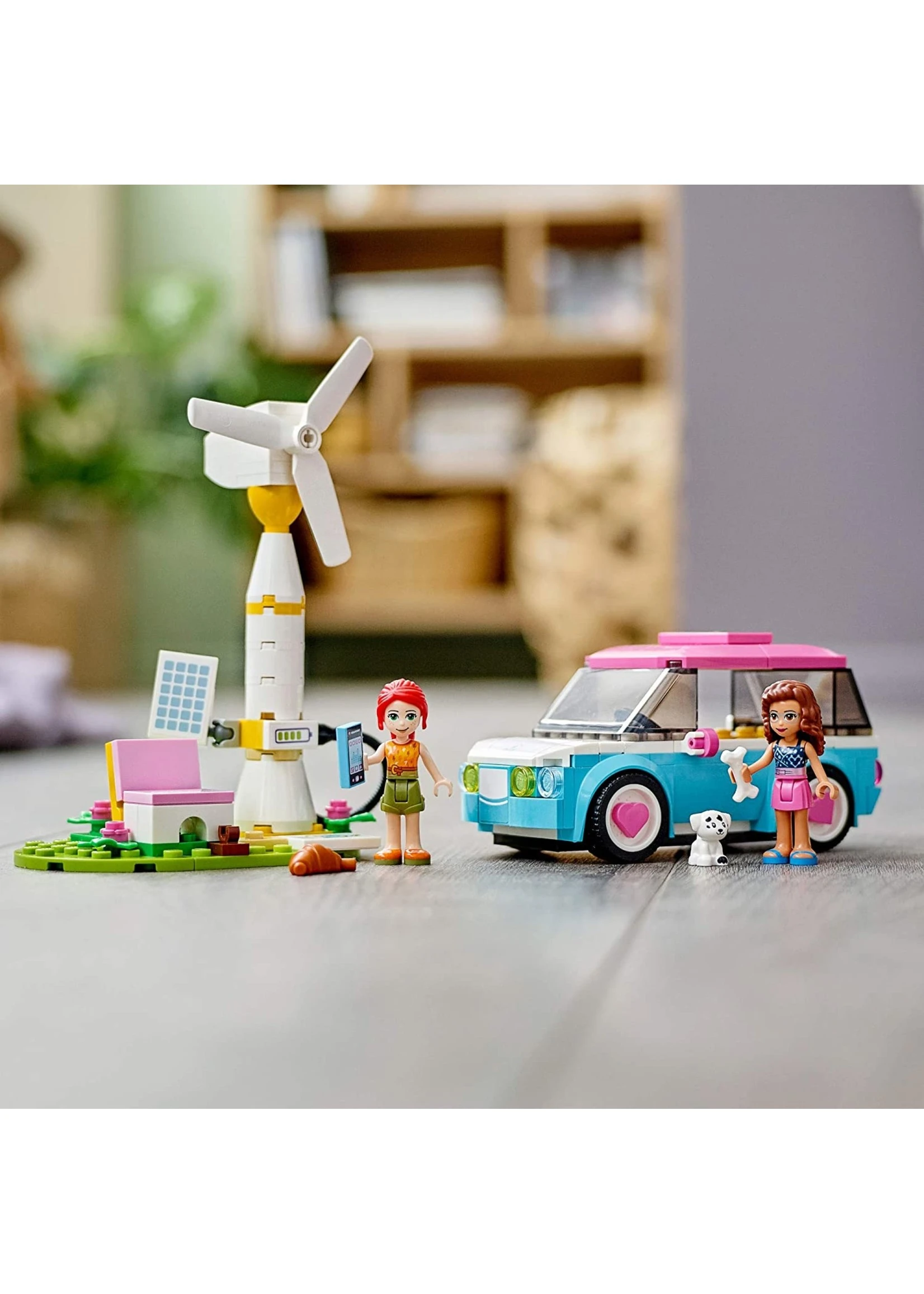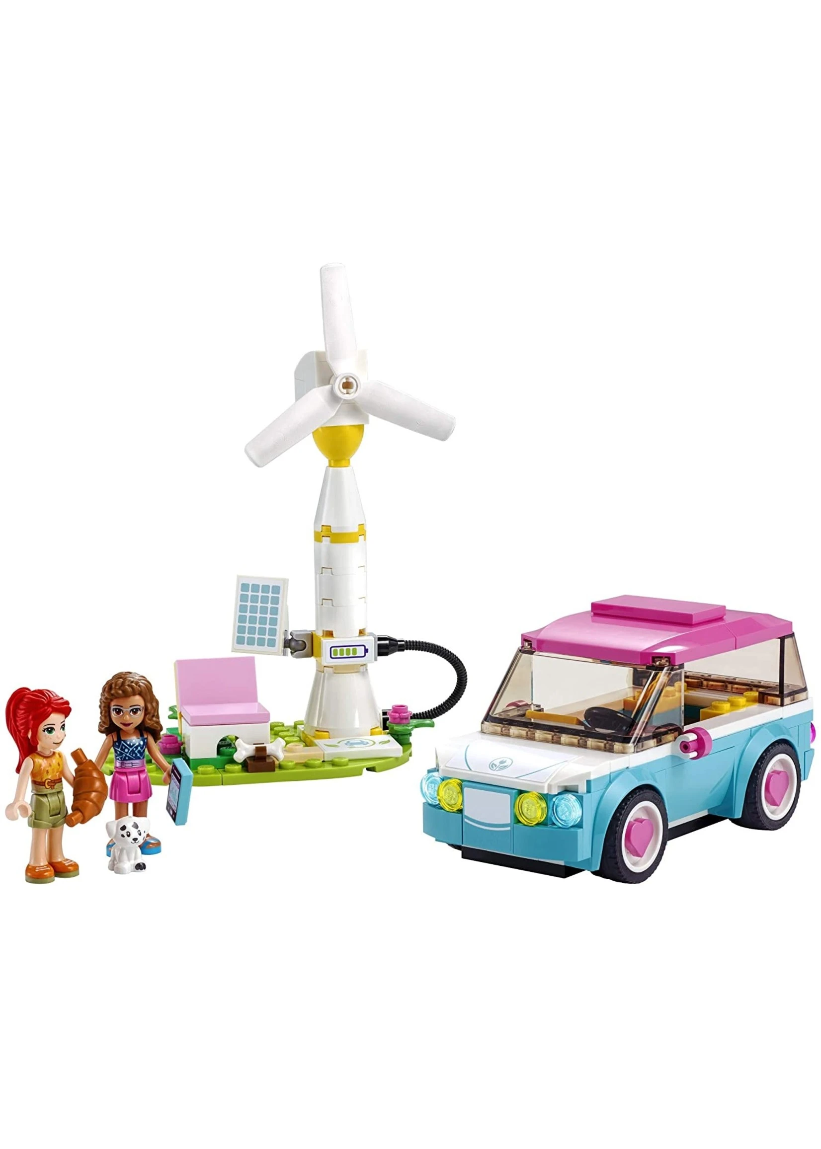 - LEGO® Friends Olivia’s Electric Car (41443) is the perfect playset for kids who love vehicles and the environment. The buildable toy car sparks creative storytelling and open-ended adventures!