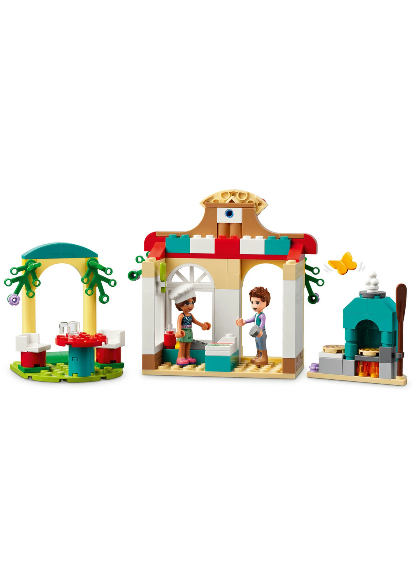 - Gift for pizza lovers – Includes LEGO® Friends Olivia and Ethan, a separate outdoor seating area, pretend pizza oven, pizza paddle, skateboard and food toys such as cheese, a grater and a sauce bottle