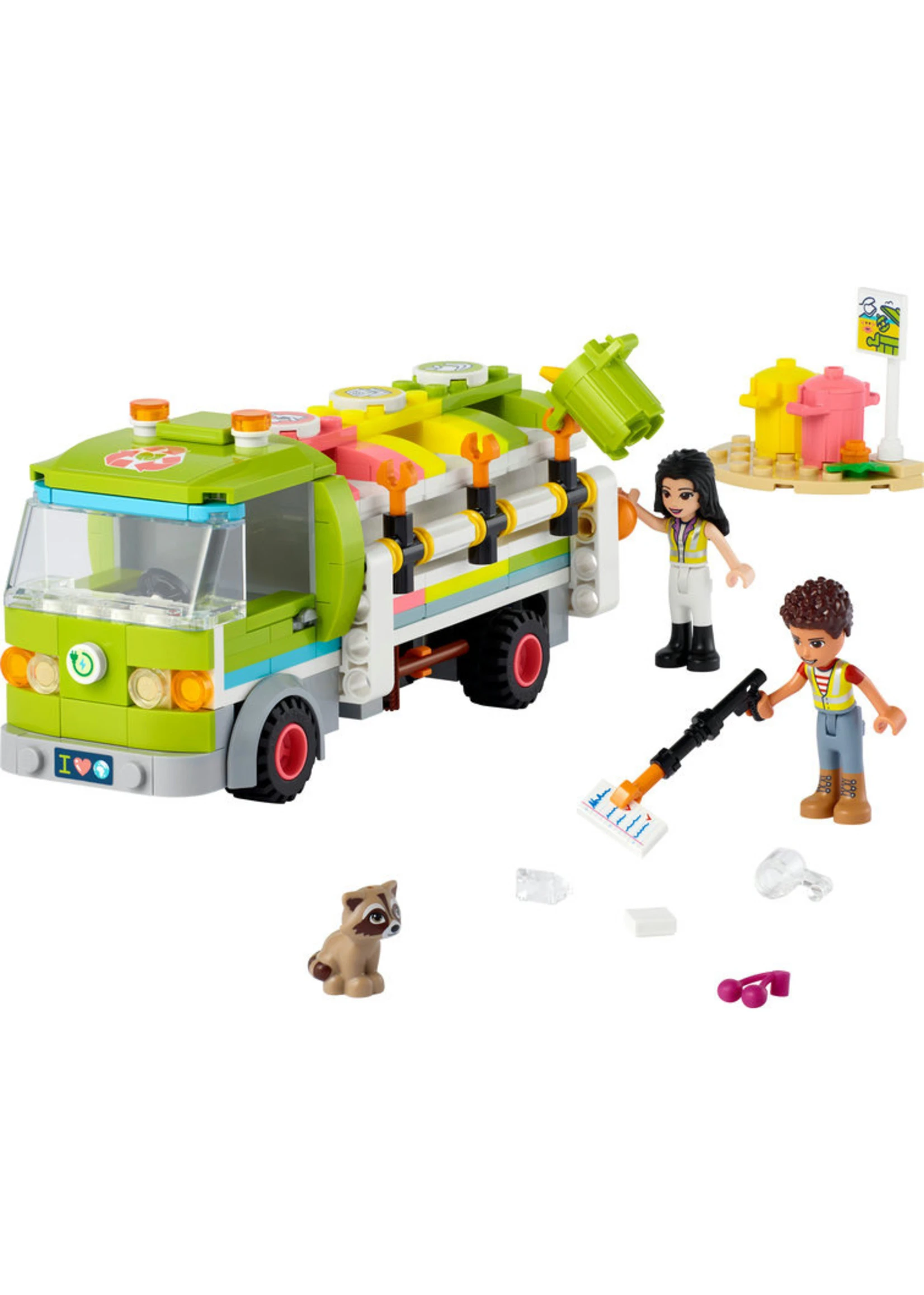- Just like the real thing – Waste-management truck toy comes with removable containers, seats upfront for the 2 mini-dolls, a hinged arm that lifts the garbage cans, and a raccoon figure