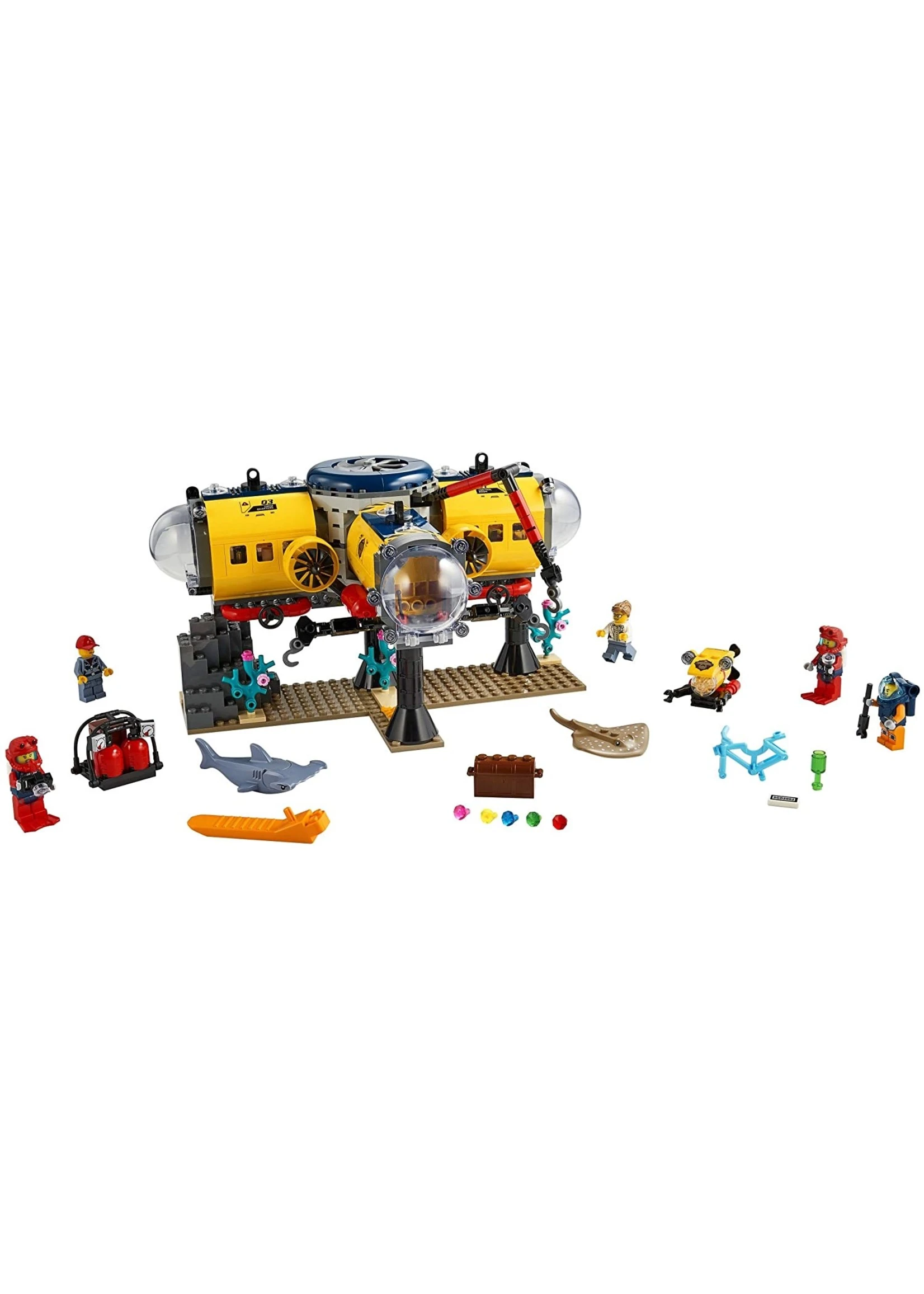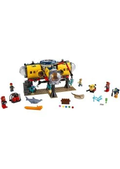 The LEGO® City Ocean Exploration Base features interchangeable living and research modules and a docking submarine with movable inspection arms, spinning propeller and opening cockpit with room for two minifigures.