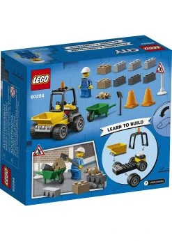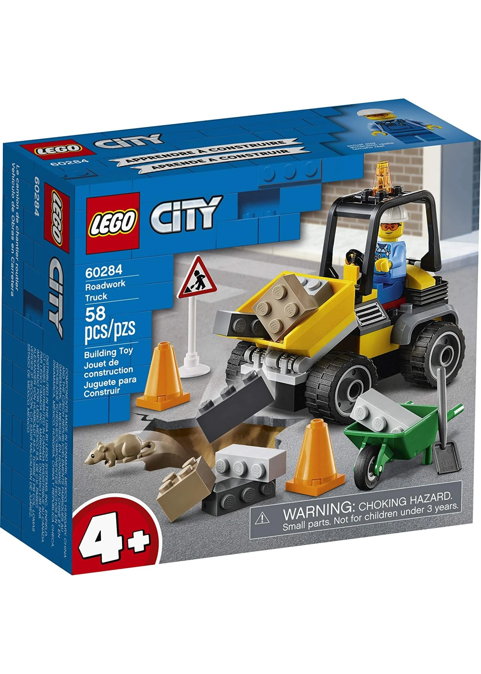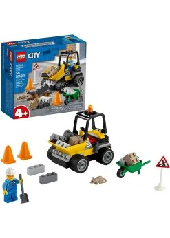 Here’s a fun treat to get kids’ imaginations working! This LEGO City Roadwork Truck (60284) toy features a front-end loader with a tipping bucket, a wheelbarrow, traffic cones, roadworks sign and a shovel. Just add the included LEGO City road worker minifigure and rat figure for hours of imaginative play. This 4+ toy construction set includes an easy-to-follow building guide and a Starter Brick element – a partly constructed base from which to start building. And with the free LEGO Building Instructions app for smartphones and tablets, kids also get Instructions PLUS – an interactive construction guide with amazing zoom and rotate viewing tools that make LEGO building child’s play. LEGO City Great Vehicles playsets deliver feature-rich, land, air and water toys that spark the imagination. Kids get to explore classic vehicles and create stories and scenarios that depict real life in a fun, imaginative way.Â