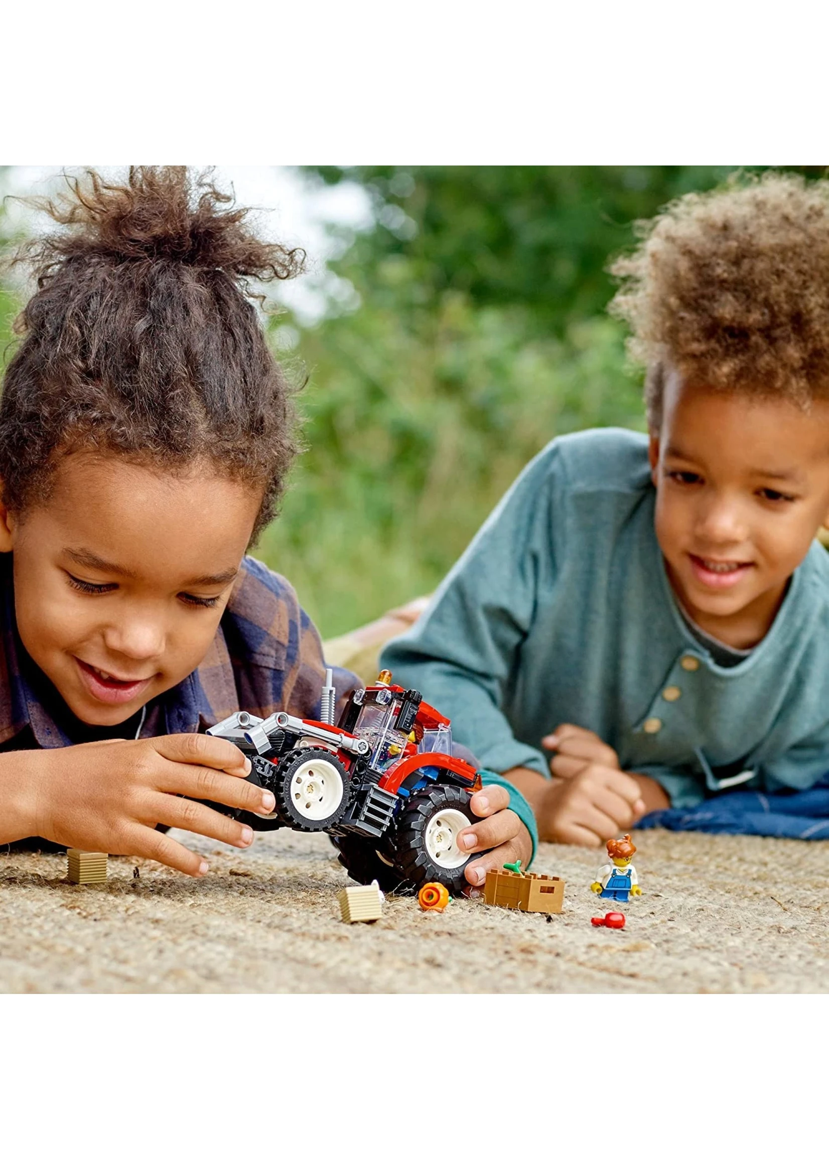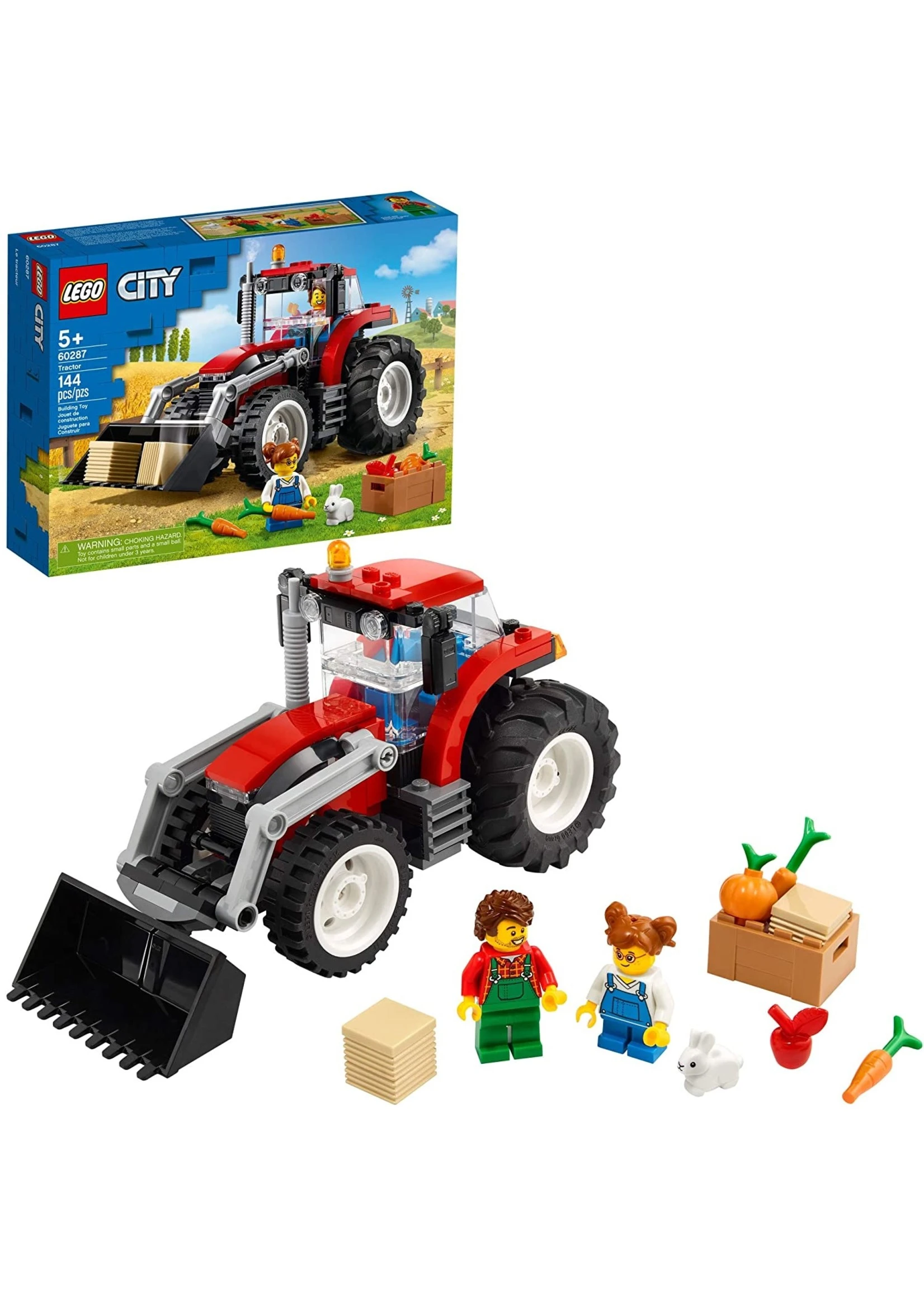 Power up kids’ creativity with the LEGO City Tractor (60287) playset. This cool tractor toy comes with lots of realistic features, including large rear tires, tipping loader bucket and a raisable boom. With farmer and daughter minifigures, a rabbit figure, 2 hay bales and a crate of veggies, the scene is set for fun farm adventures. You’ll find easy-to-follow building instructions for this LEGO set in the box. Or you can hop online and download Instructions PLUS, part of the LEGO Building Instructions app for smartphones and tablets. This interactive construction guide, with amazing zoom and rotate viewing tools, helps budding builders become master builders. LEGO City Great Vehicles playsets deliver realistic vehicles and machines along with fun characters to inspire imaginative role play. Kids get to explore their favorite land, air and sea vehicles, developing physical skills and confidence as they build and play.