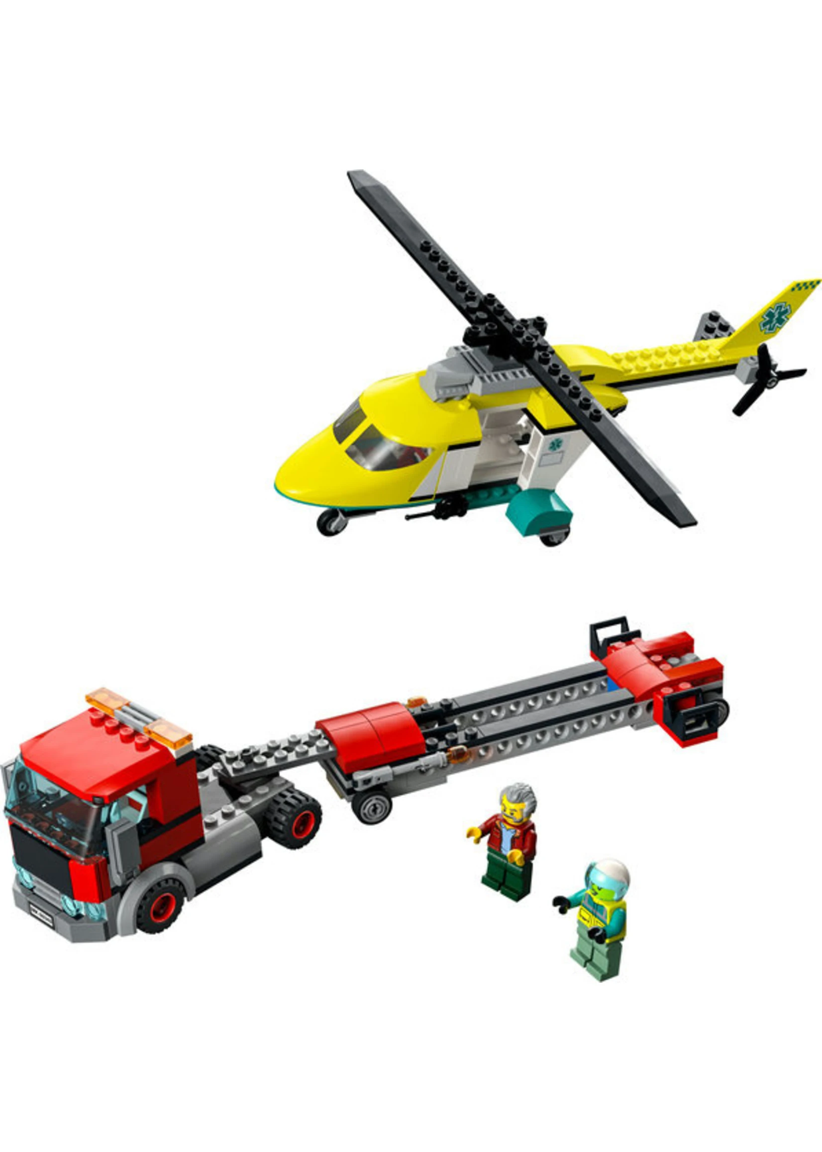 - Road transport and air-rescue playset – This LEGO® City Rescue Helicopter Transport (60343) buildable toy playset is packed with LEGO inspiration for imaginative play