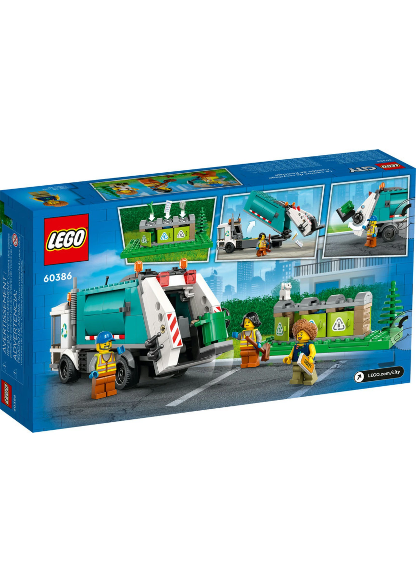 - Toy Recycling Truck – Caring for the environment is fun with this LEGO® City Recycling Truck (60386) playset, complete with a recycling center setting