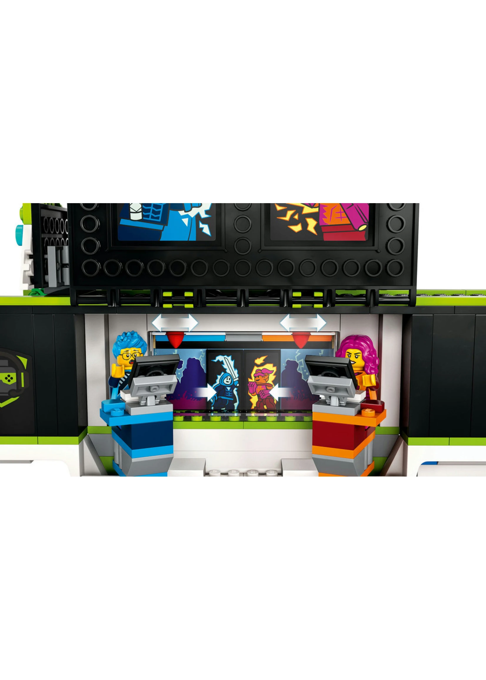 - What’s in the box? – Everything kids need to create a Gaming Tournament Truck with a stage, 2 toy computer gaming stations and stadium screen, plus a winner’s trophy, merchandise and 3 minifigures