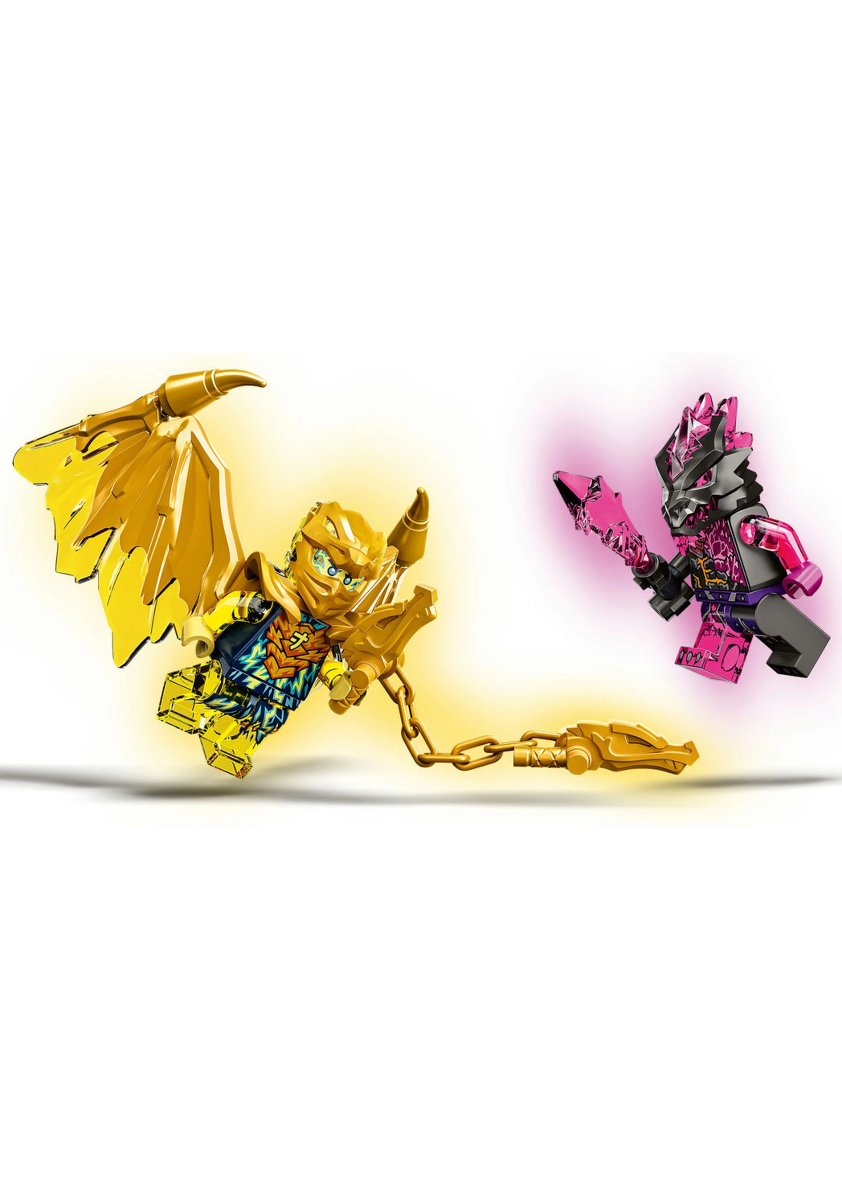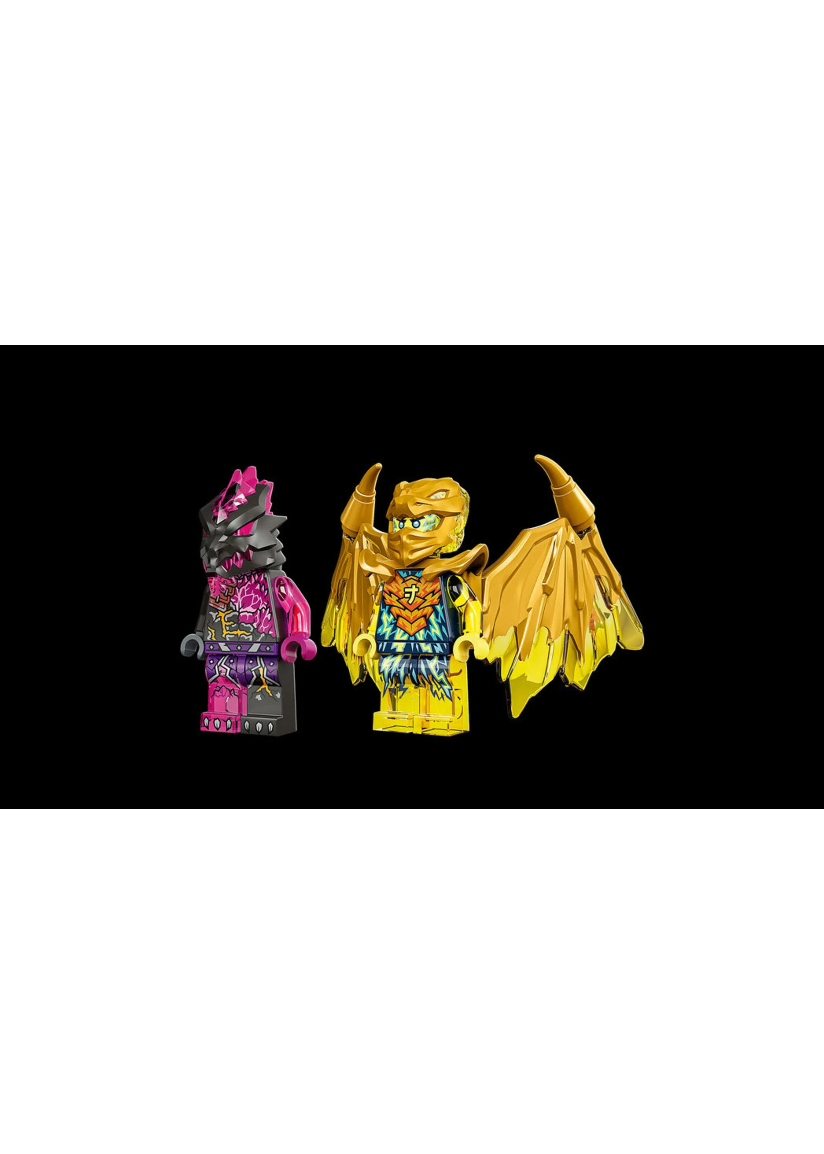 The ninja vehicle toy comes with 2 minifigures: Golden Dragon Jay, who can be strengthened with his elemental golden nunchucks weapon and a set of golden dragon wings adorned with spikes, and a Vengestone Warrior with a sword, who is accompanied by a crystal spider. Kids can play out adventures to help Golden Dragon Jay defend NINJAGO City from attack.