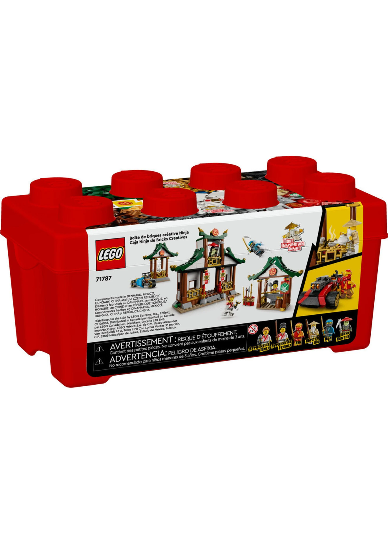 - Action-packed playset – Kids have all they need to train up their ninja heroes with the LEGO® NINJAGO® Creative Ninja Brick Box (71787), featuring 3 buildings, 3 obstacles and 2 vehicles