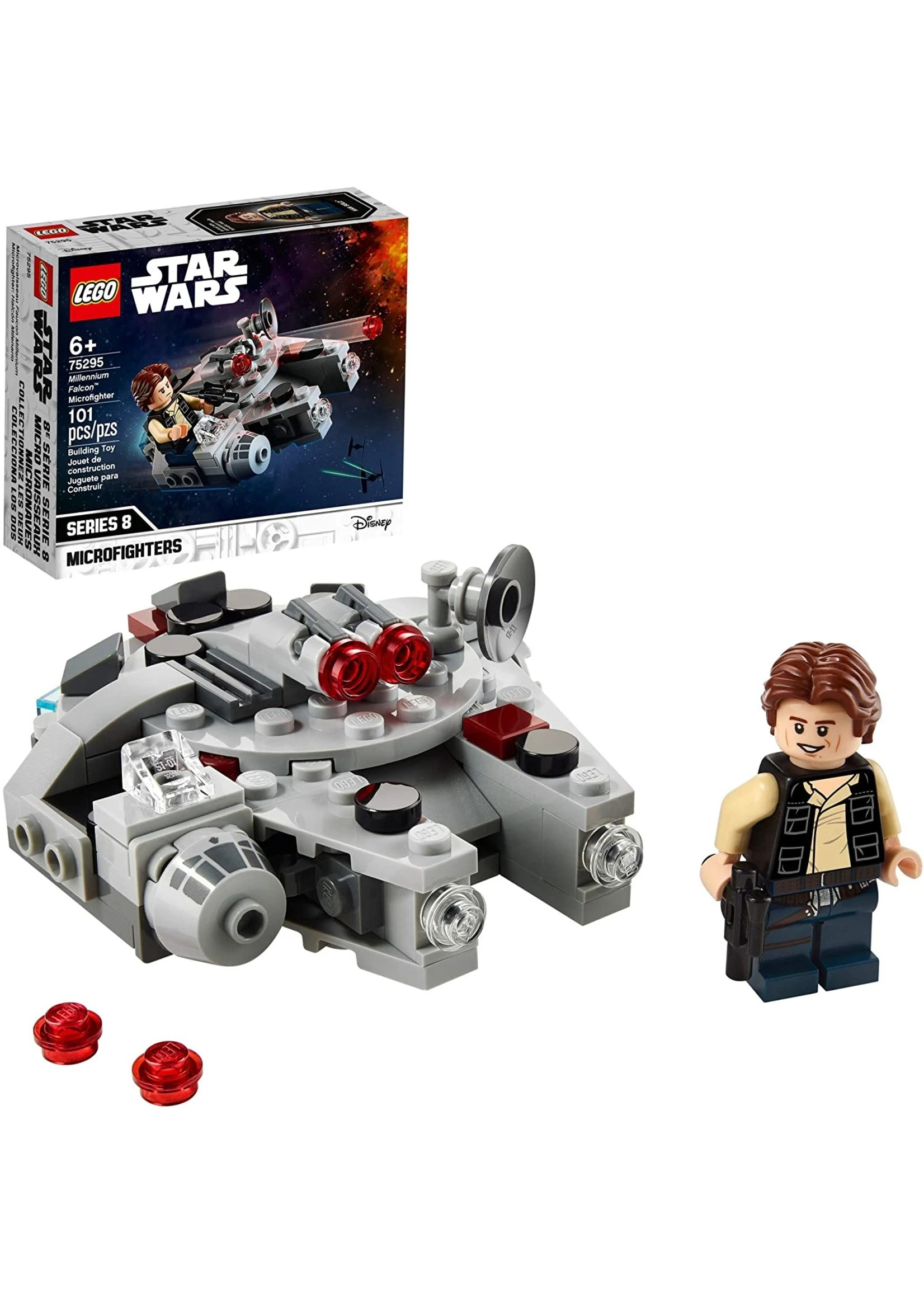 - The Millennium Falcon Microfighter (75295) features a seat for the Han Solo LEGO® minifigure and 2 stud shooters, for fun, creative play. Han Solo also has a blaster pistol.