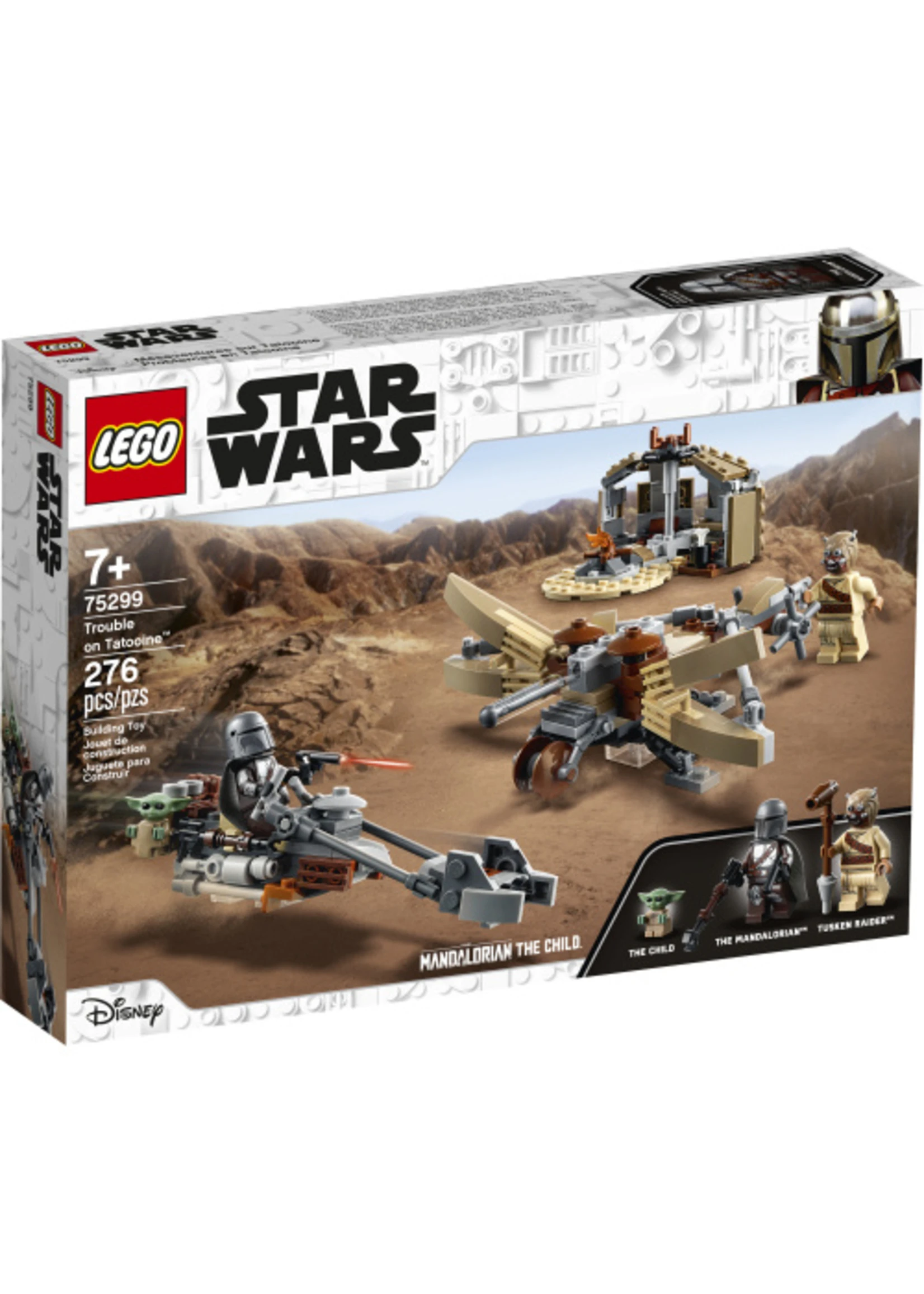 - Includes The Mandalorian and Tusken Raider LEGO® minifigures, each with weapons for role-play battles, plus a LEGO figure of the Child (the popular character affectionately known as Baby Yoda).