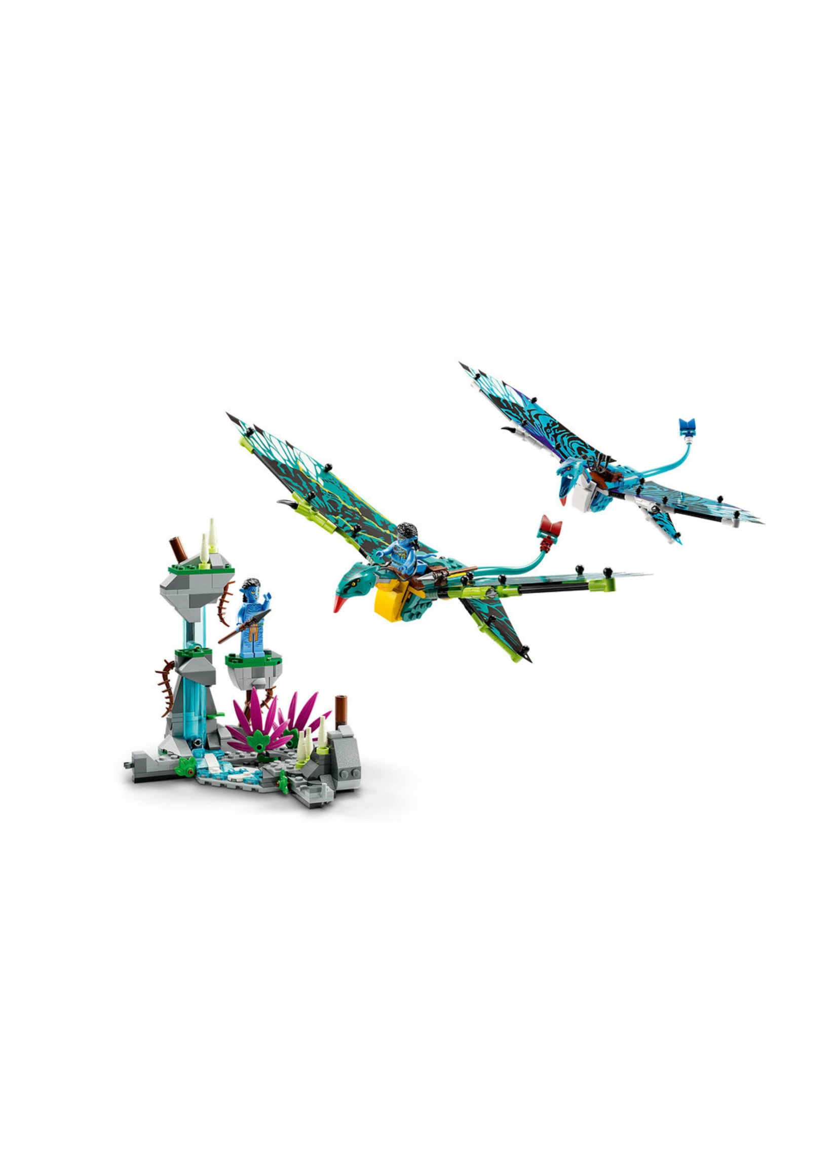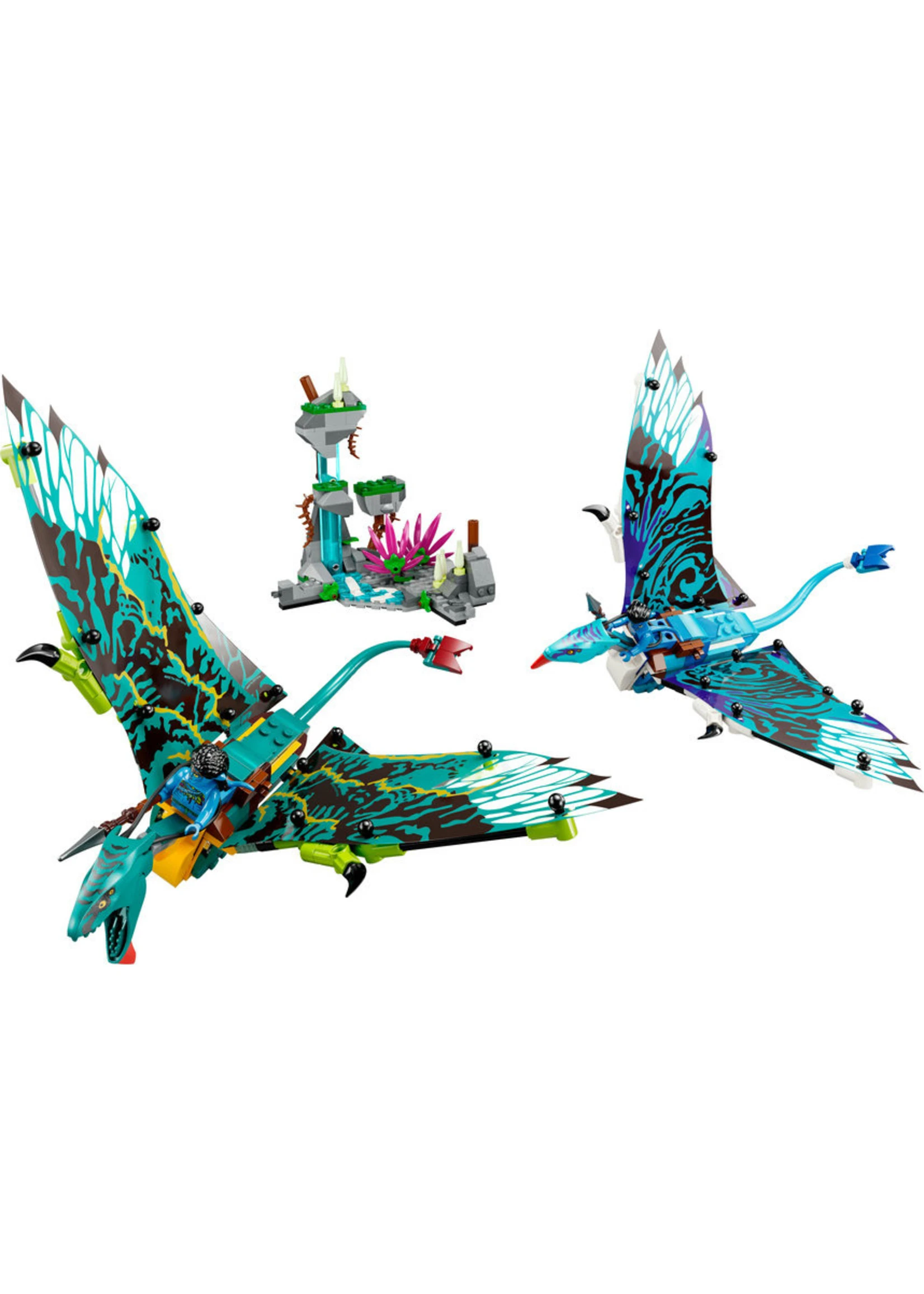- What’s inside – This immersive LEGO® set includes Jake Sully and Neytiri minifigures, 2 buildable Banshee figures with posable foil wings, plus a buildable mountain scene with glow-in-the-dark pieces