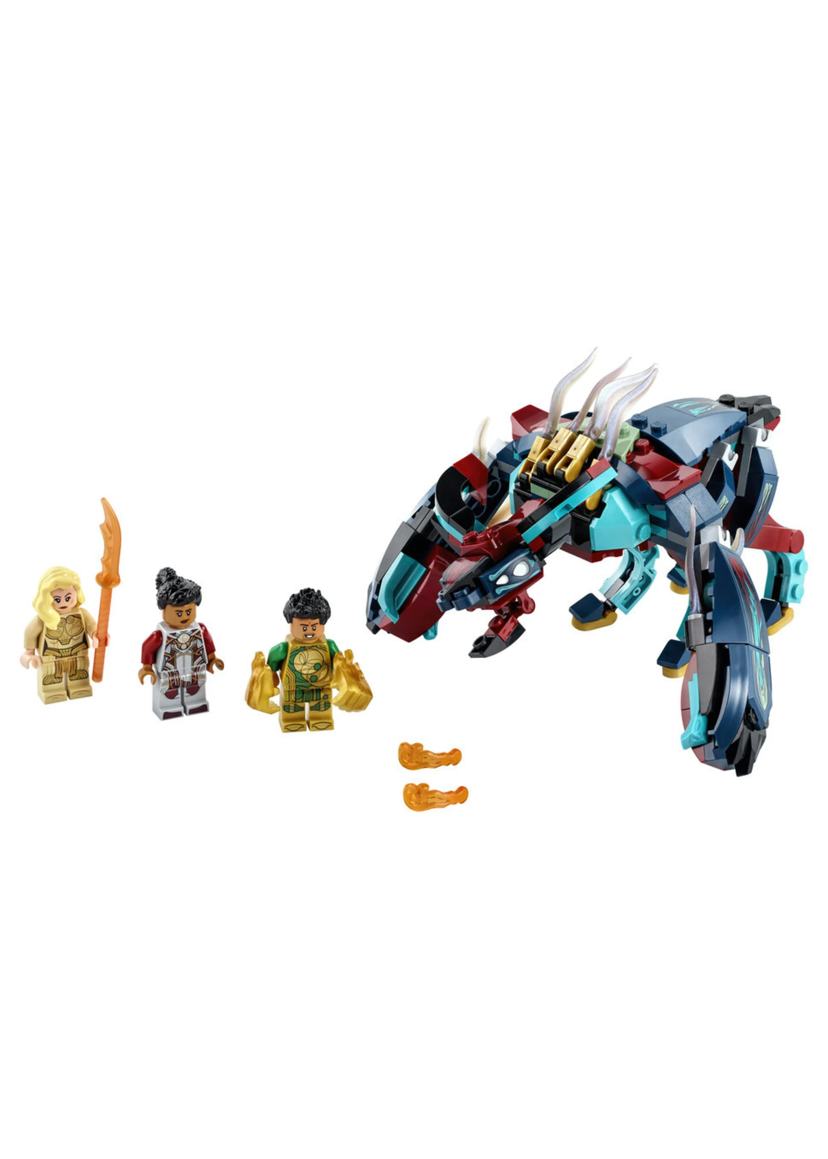 - Includes 3 LEGO® Marvel Eternals superhero minifigures – Thena, Makkari and the exclusive Gilgamesh – a posable, 6-legged Deviant with an open-and-close mouth, a dagger, fist weapon and a shooter.