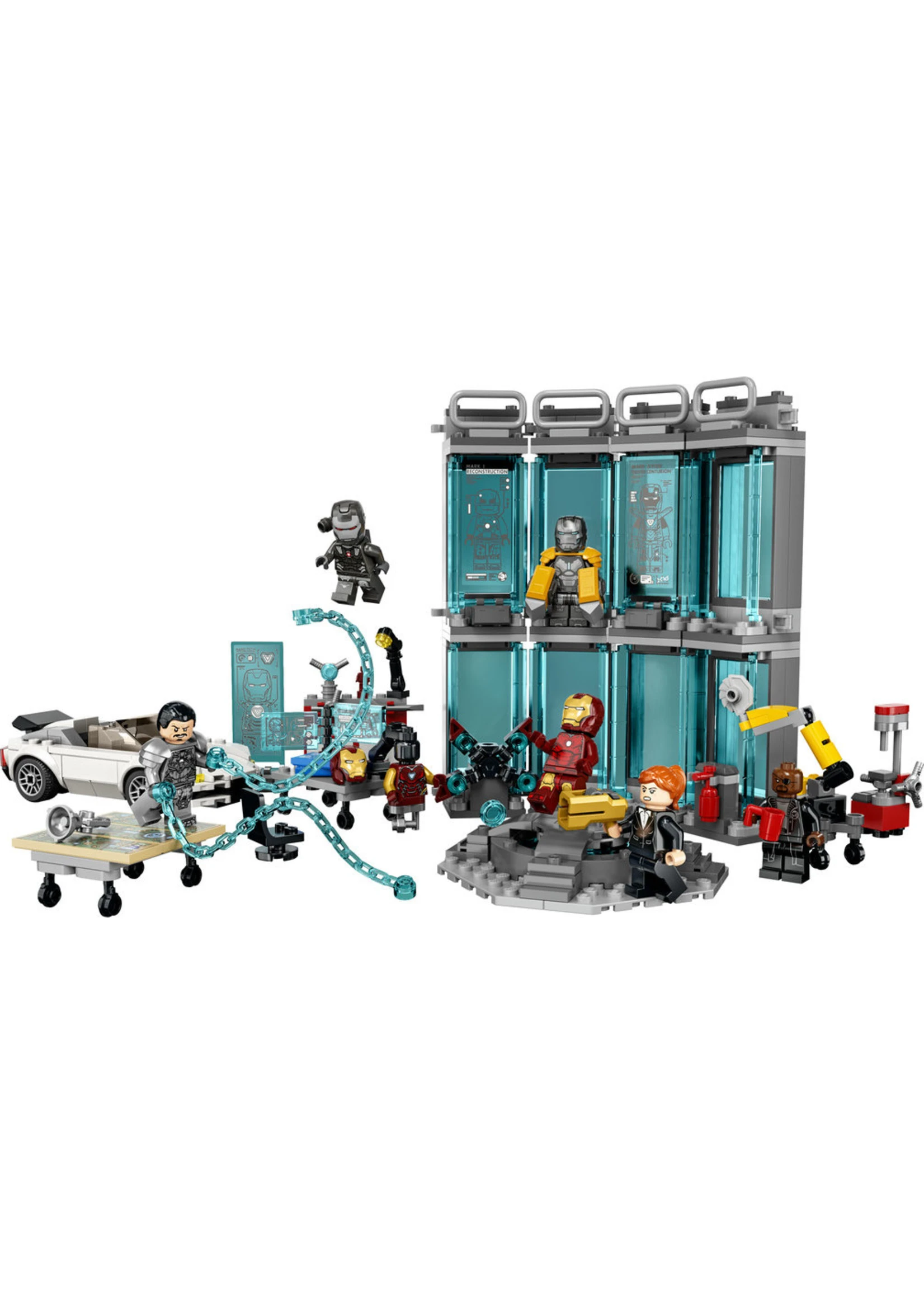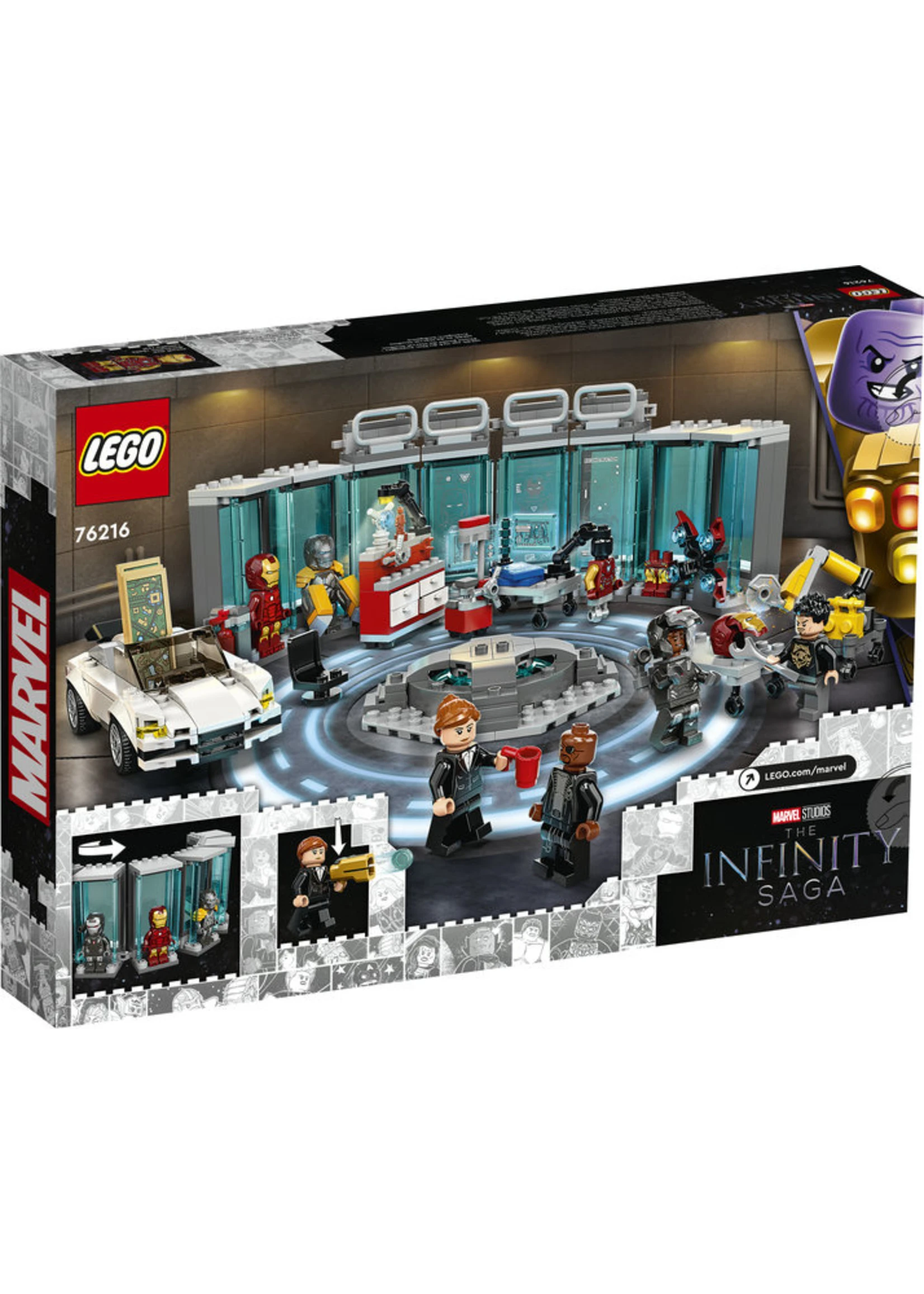 - Iron Man headquarters – Celebrate Marvel Studios’ Infinity Saga with the LEGO® Marvel Iron Man Armory (76216), packed with authentic details, features and minifigures