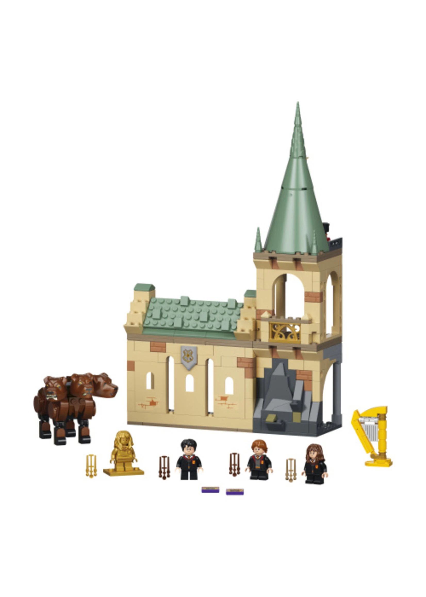 - Includes Harry Potter™, Hermione Granger™ and Ron Weasley™ minifigures, a buildable giant dog with 3 heads, 5 buildable modules, a = nd authentic accessories including a magical harp.