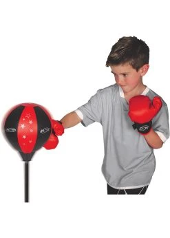 Young athletes will love keeping fit with this adjustable, inflatable sparring bag. Fill the base with sand or water for stability on any surface, then practice kicking and punching to build up dense muscles and bones for some serious strength! Gloves and pump included.